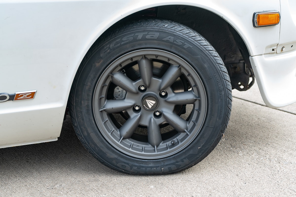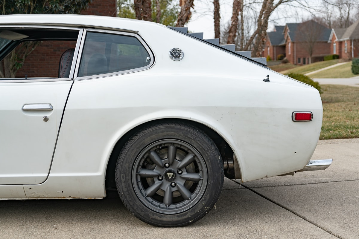 The drivetrain features a rebuilt 5-speed transmission from a 1977 280Z, paired with a new clutch, pressure plate, and flywheel. The upgrade significantly enhances the driving experience. The original 3-speed automatic transmission is available separately for purists.