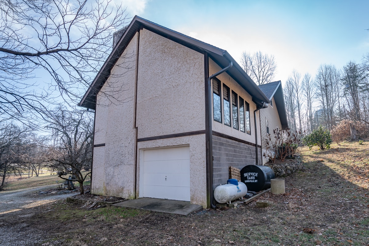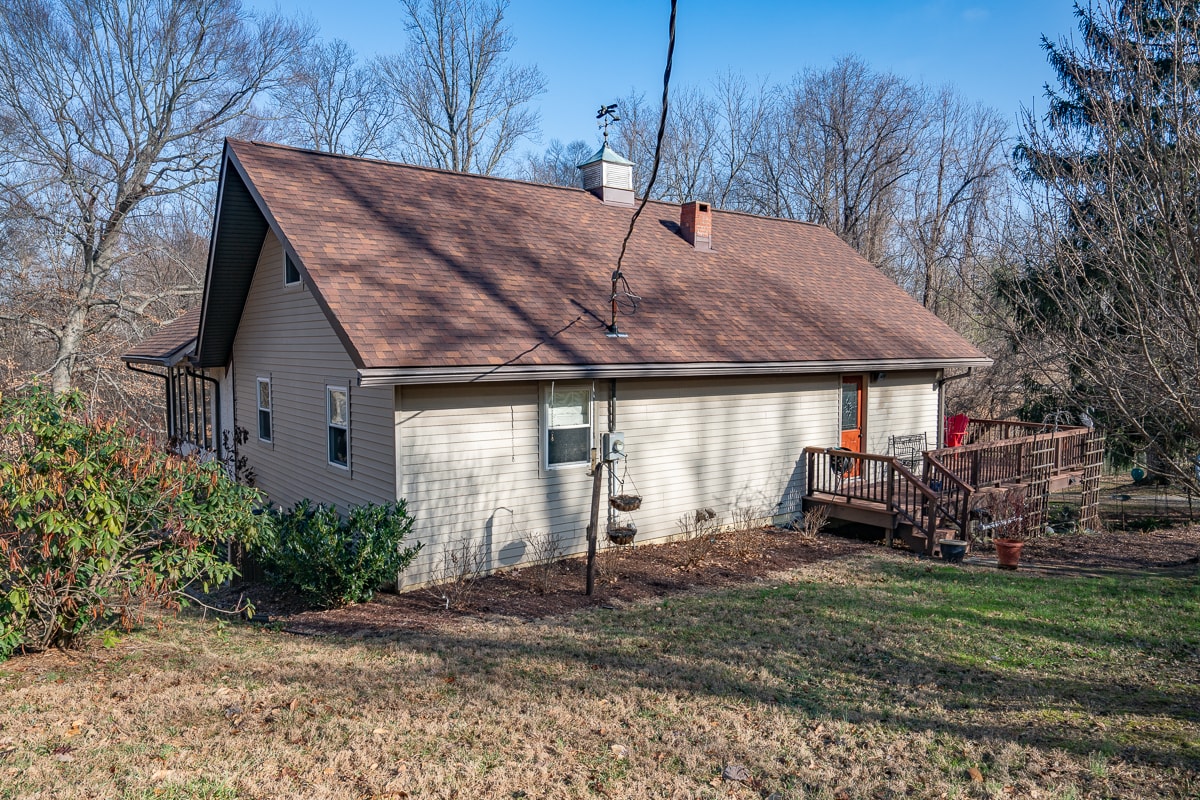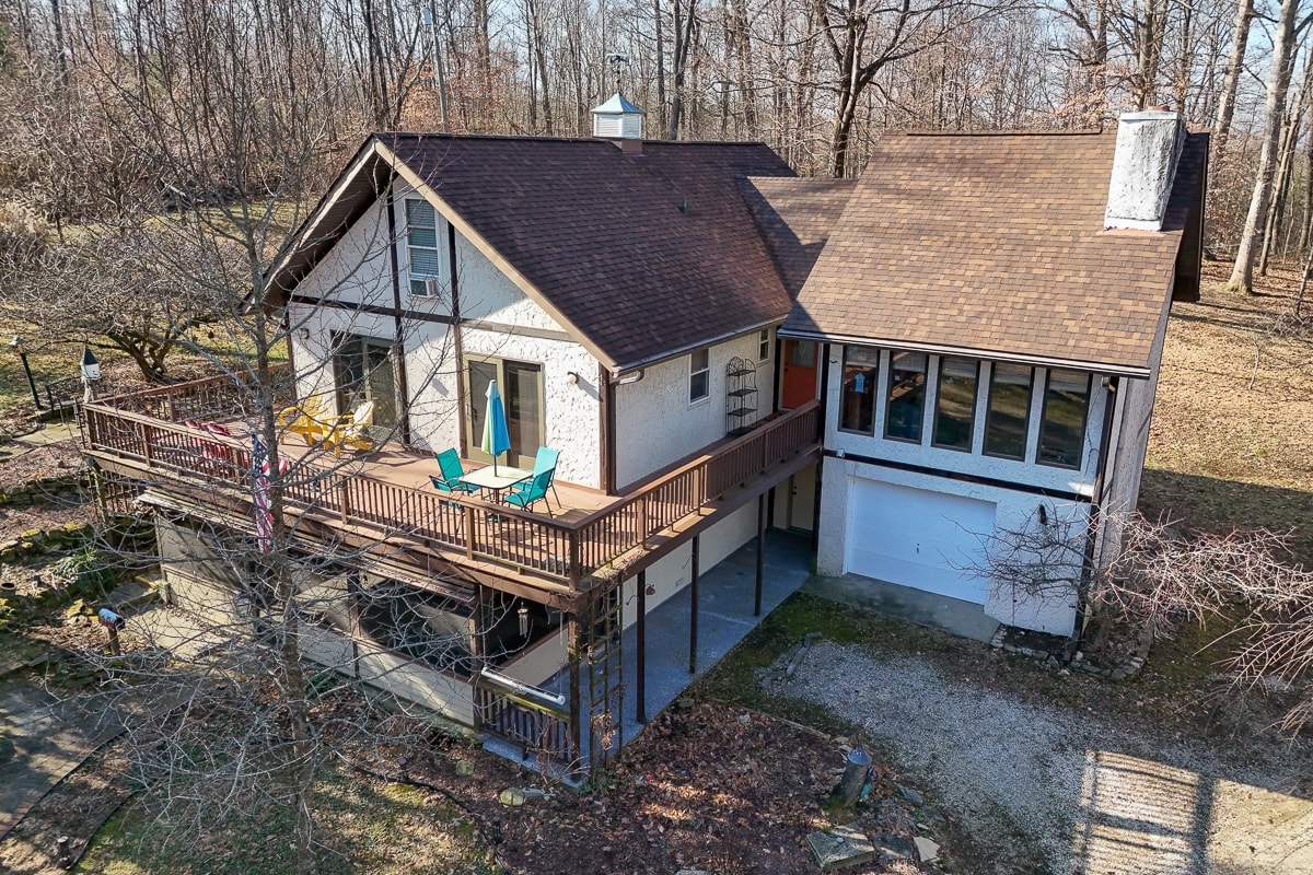 Fresh to the marketplace, a cozy chalet style stucco-and vinyl-sided home with wrap-around deck, screened porch and oversized one car garage situated on a secluded wooded 3.48 acres. The main house built in 1969 with a 1976 addition, features living space on three levels with lots of built-ins and extras.
