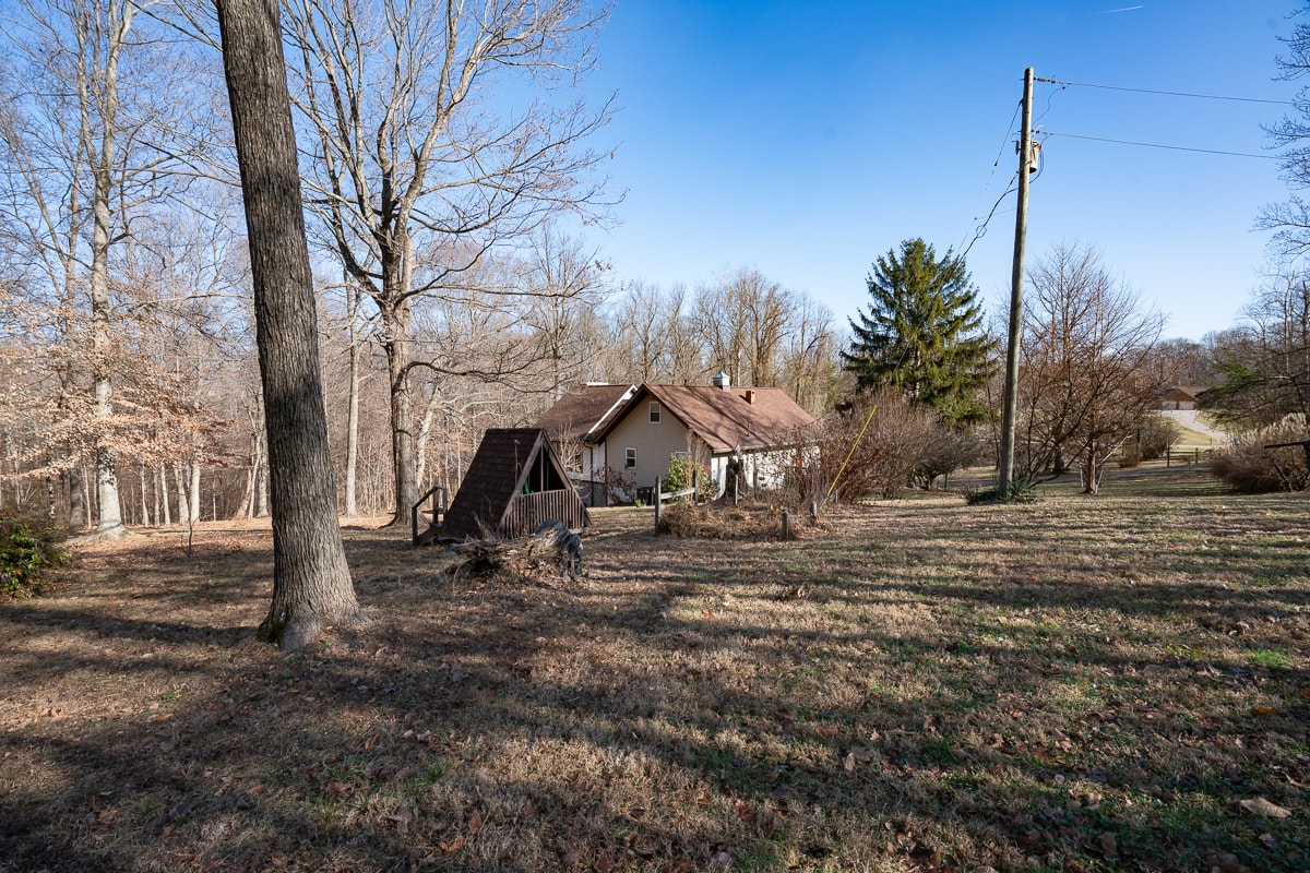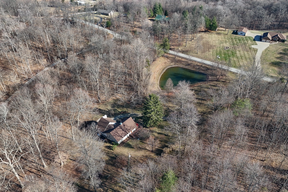 Selling online at auction, a 1.5 story chalet style 2,731 square foot 4 bedroom – 2.5 bath home nestled on 3.48 wooded acres overlooking a pond. The home features a family room addition with cathedral ceiling plus oversized one car garage with two overhead doors located in Floyd County. Easy access to I-64, just 20 minutes to downtown Louisville, KY.