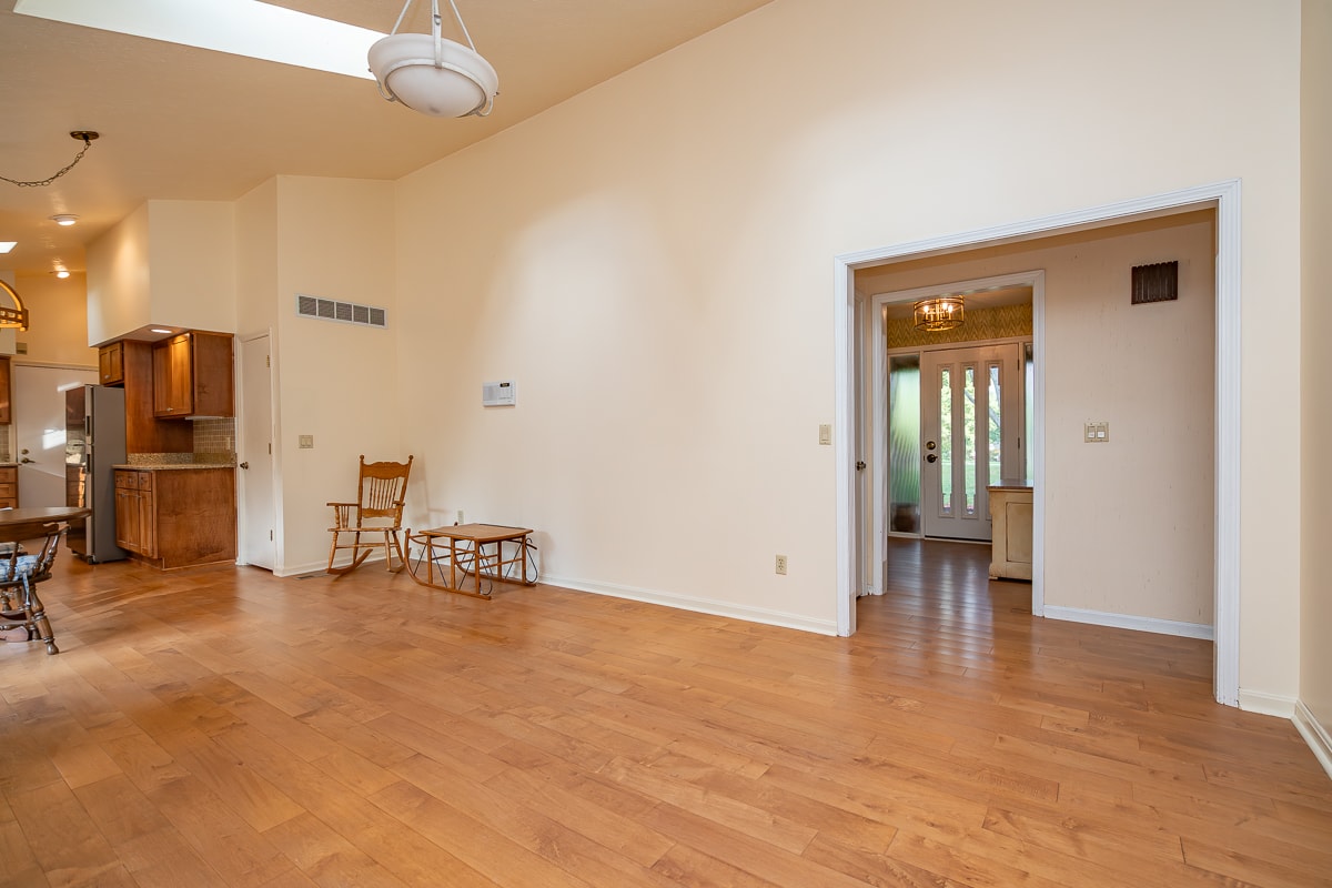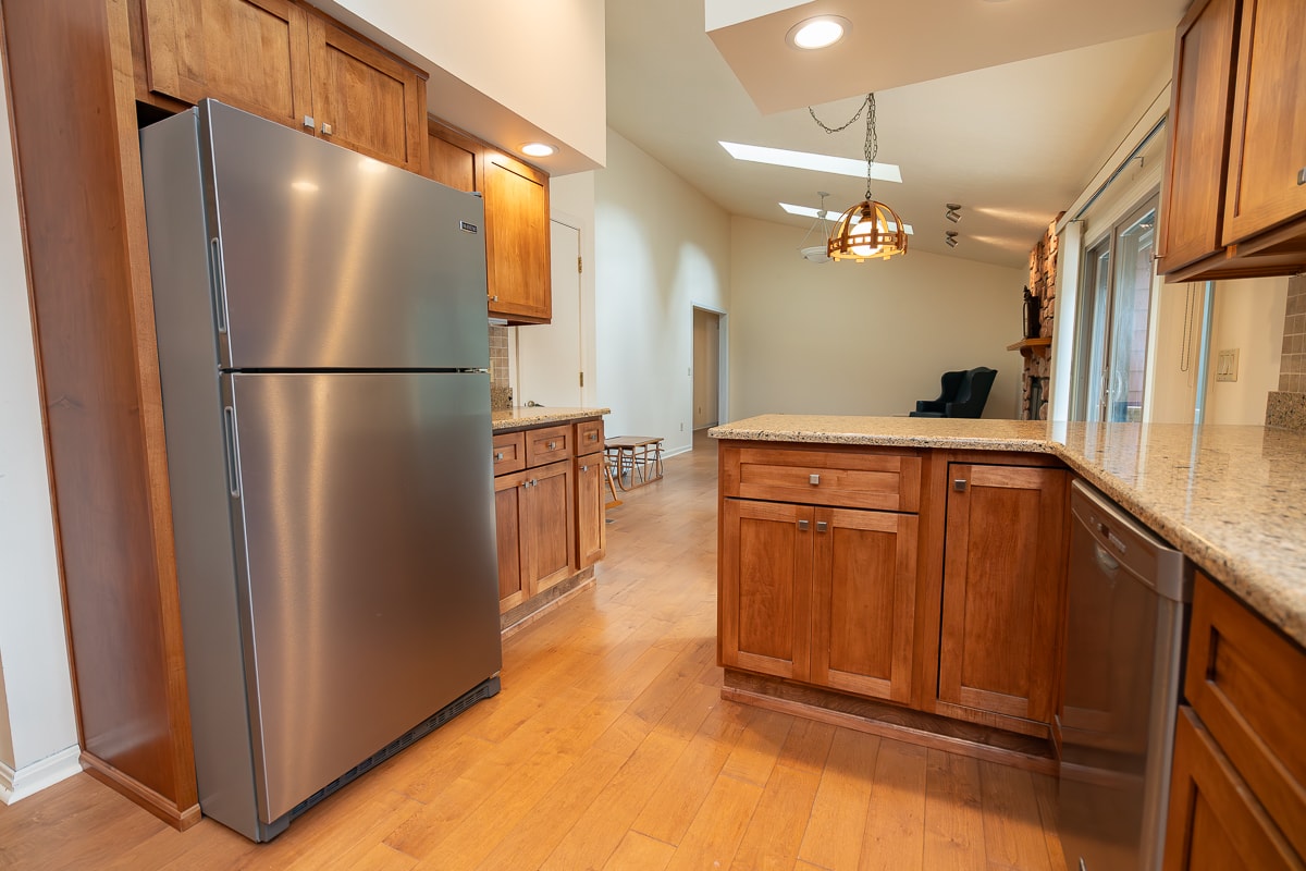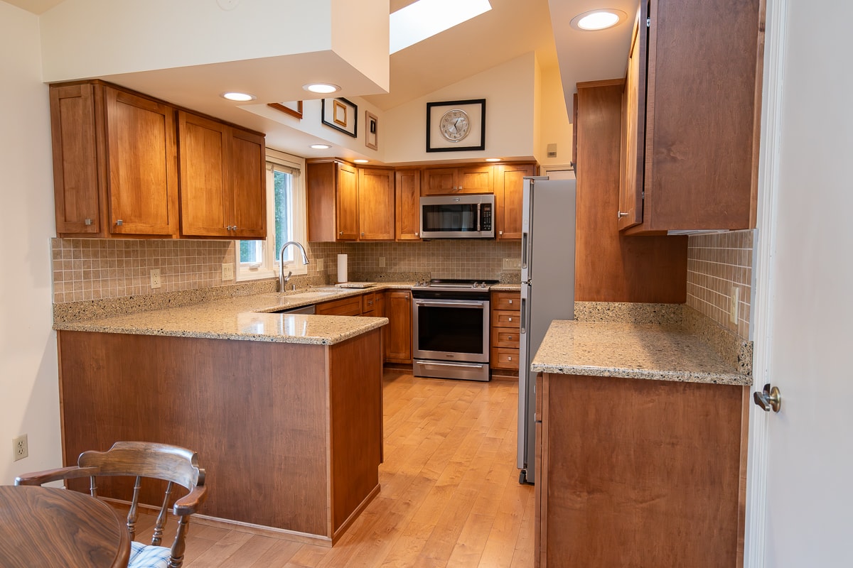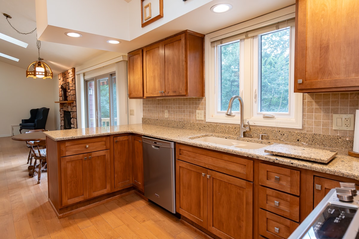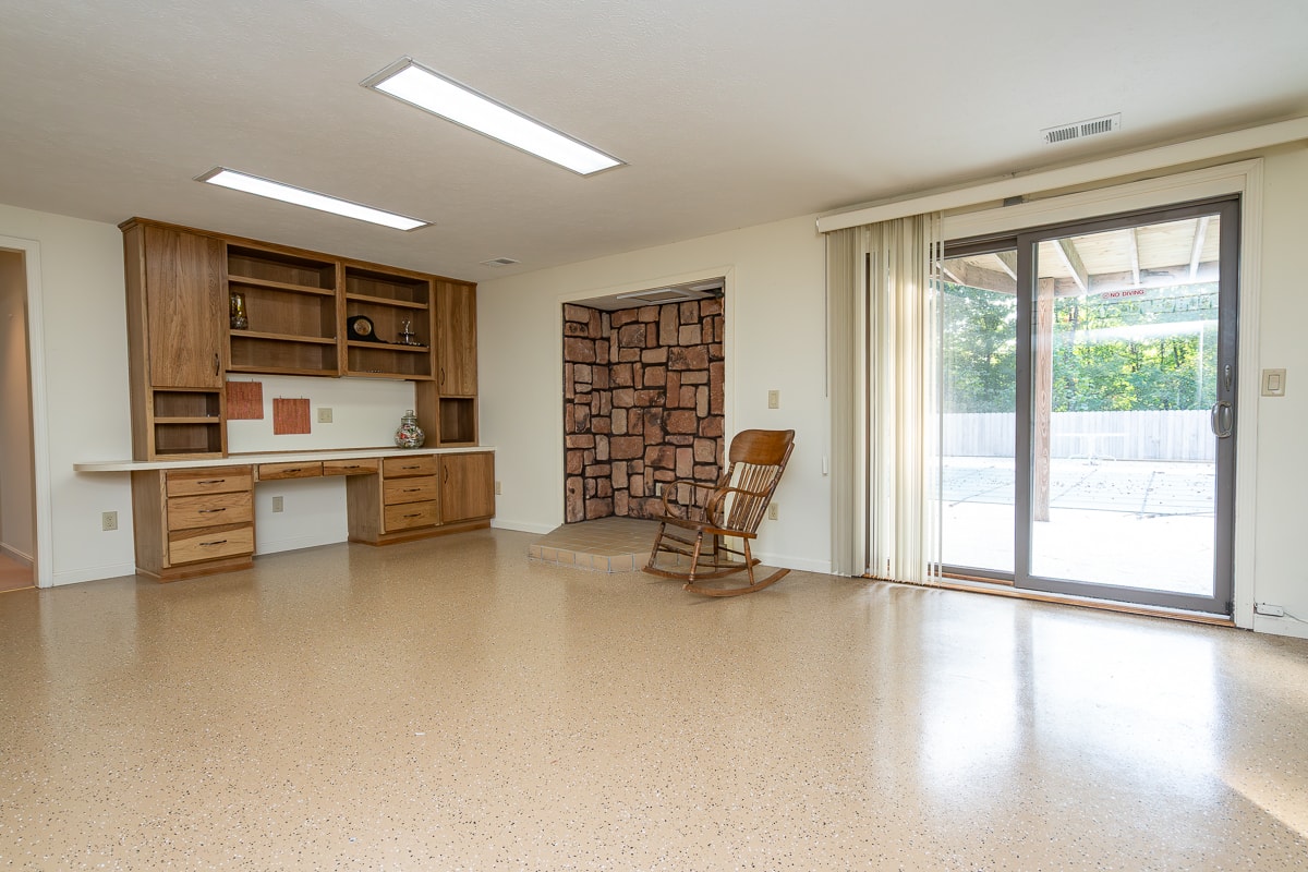 - Hearth Room with 11’ Vaulted Ceiling, Woodburning Fireplace, Skylights & Deck Access