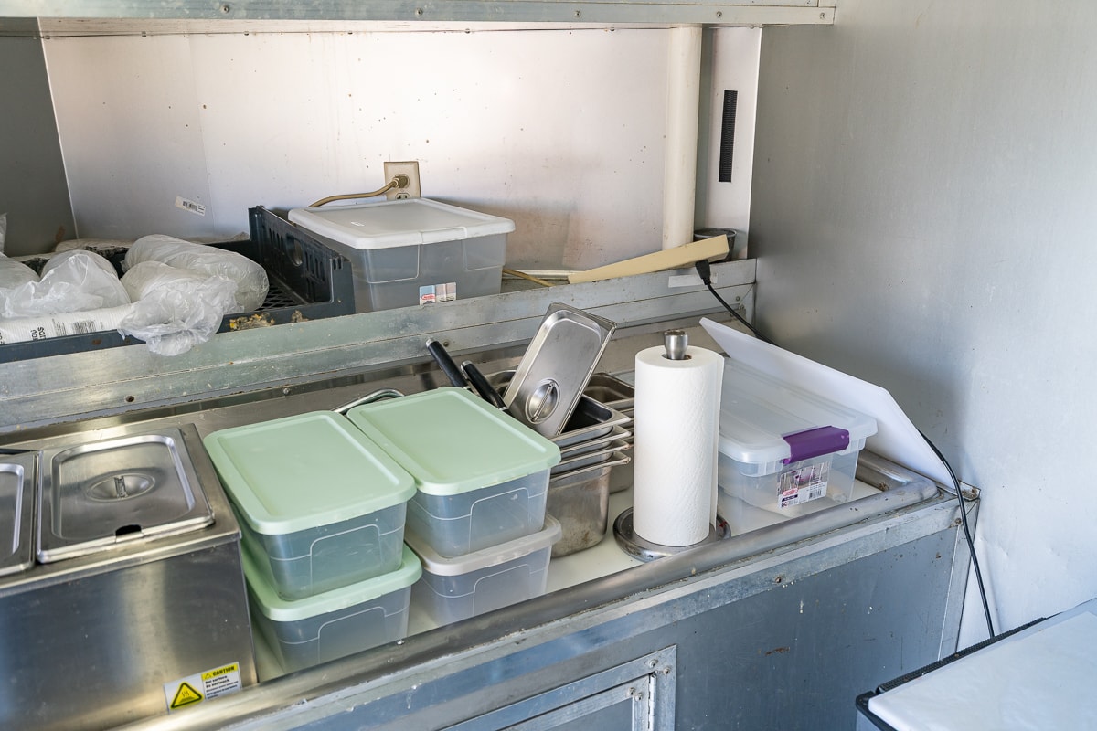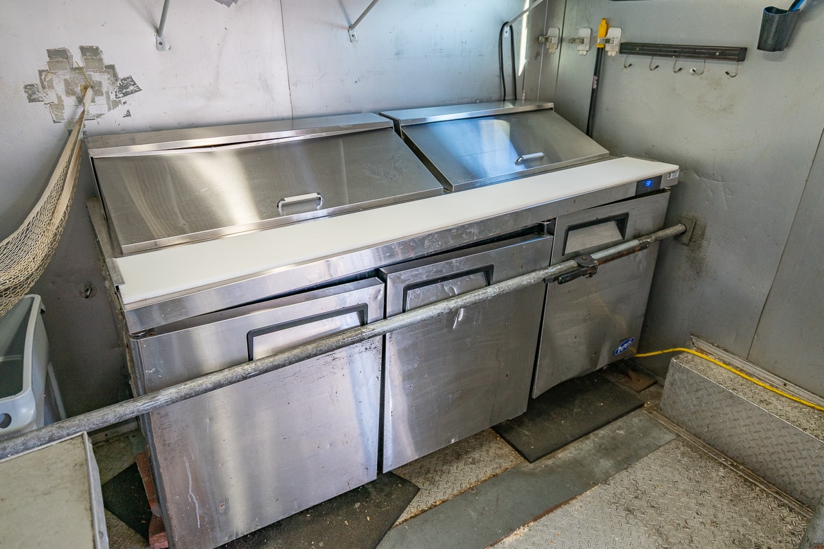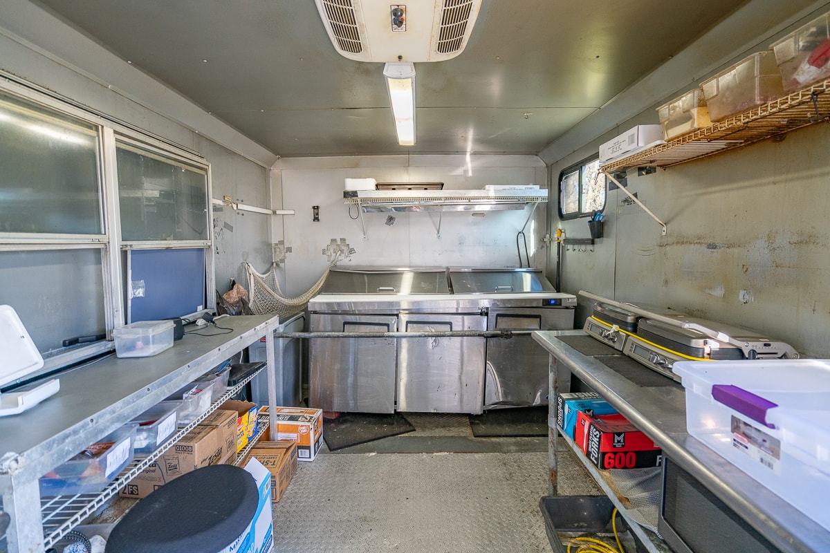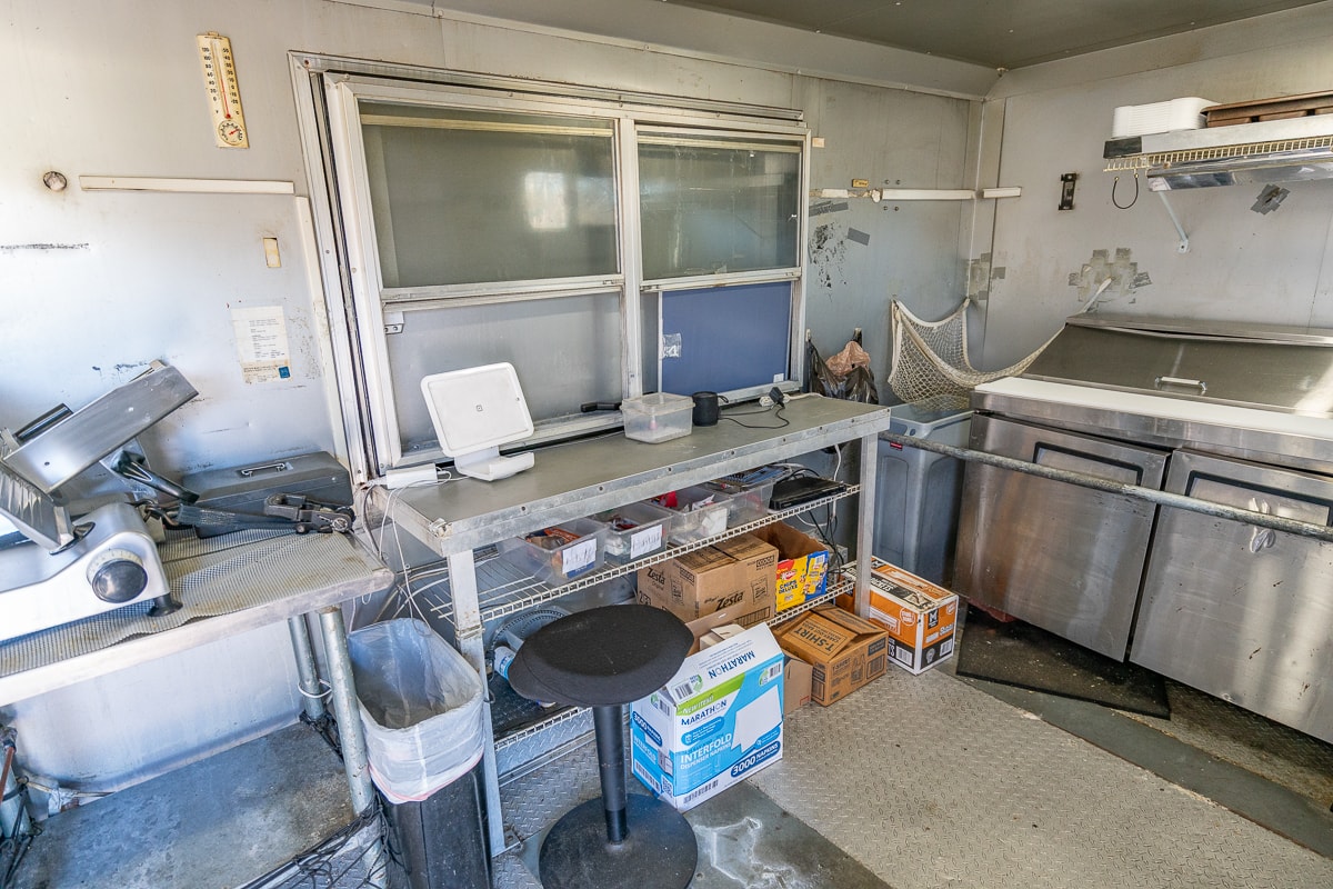 FEATURES: Retractable Awning, Fold Up Serving Window & Counter, Roof Air Conditioning, Honda EV Generator, Refrigerator, Microwave, Prep Table & Sink, Stainless Steel Tables, Panini Presses, KWS Meat Slicer & Kitchen Supplies.