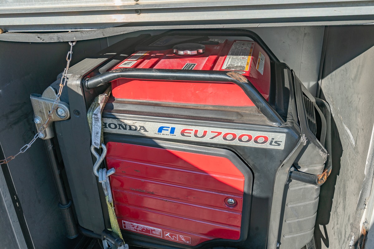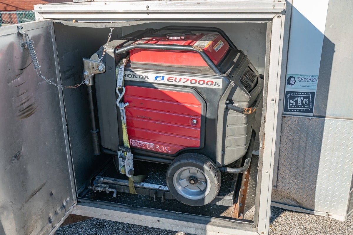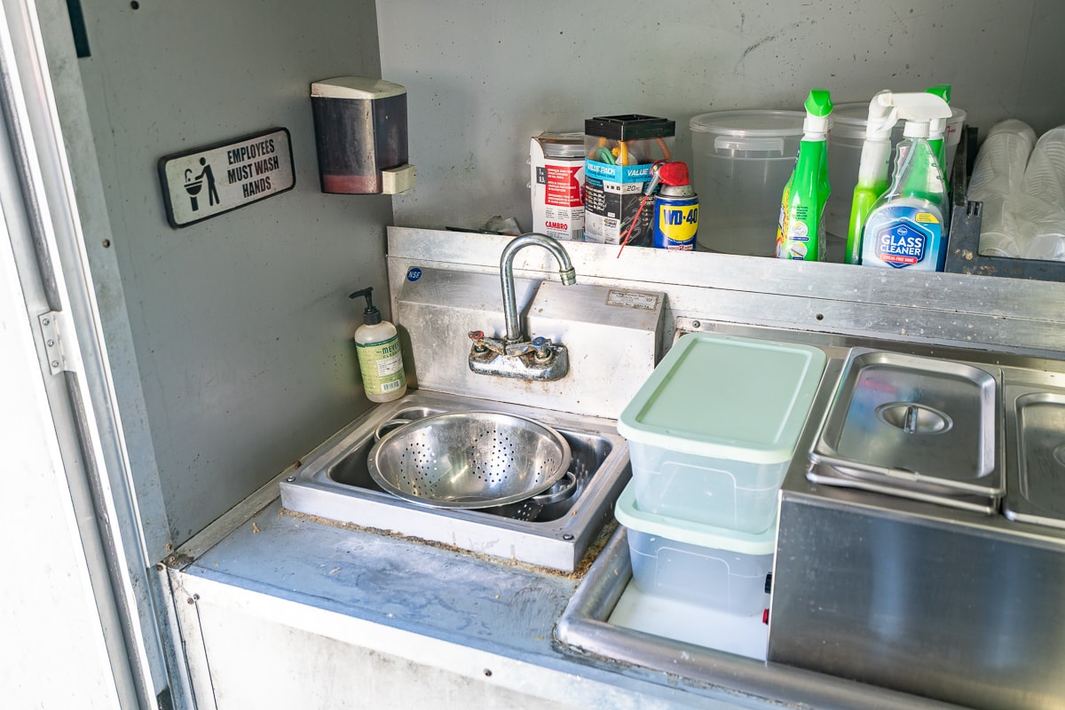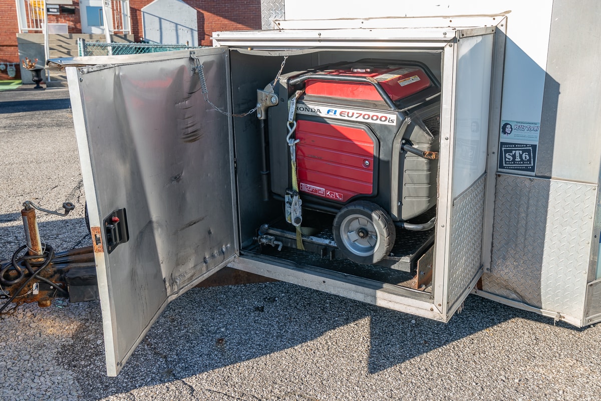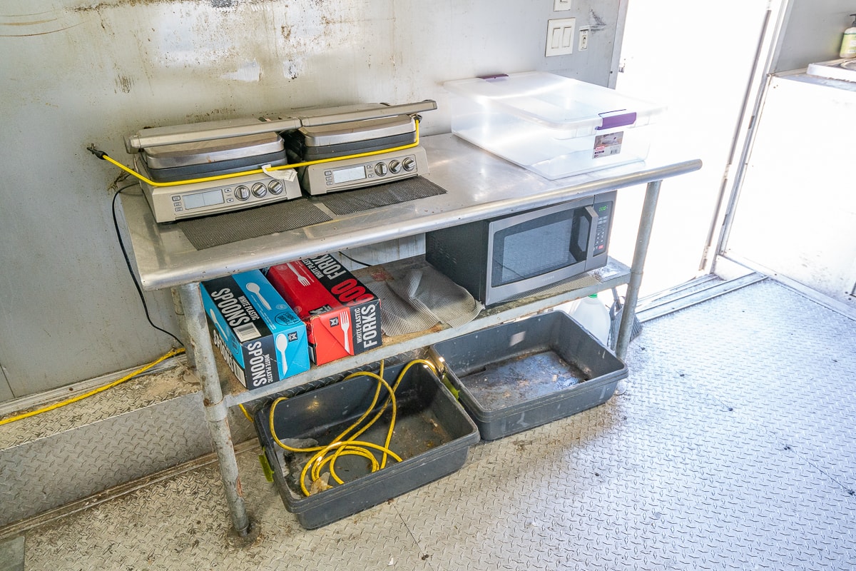 FEATURES: Retractable Awning, Fold Up Serving Window & Counter, Roof Air Conditioning, Honda EV Generator, Refrigerator, Microwave, Prep Table & Sink, Stainless Steel Tables, Panini Presses, KWS Meat Slicer & Kitchen Supplies.