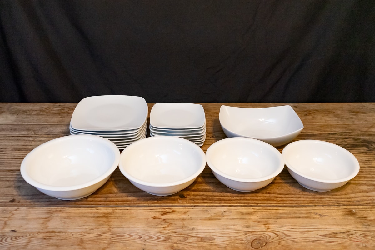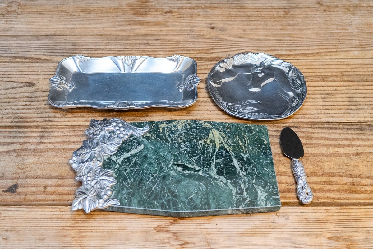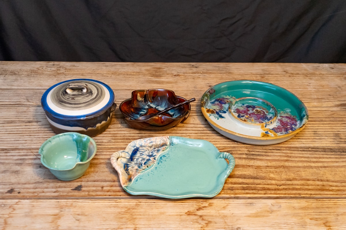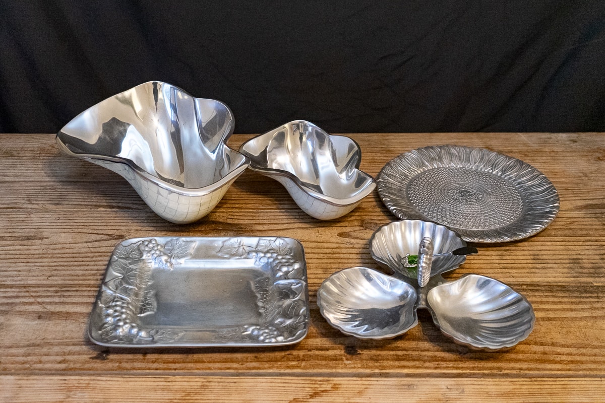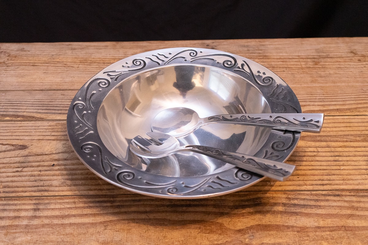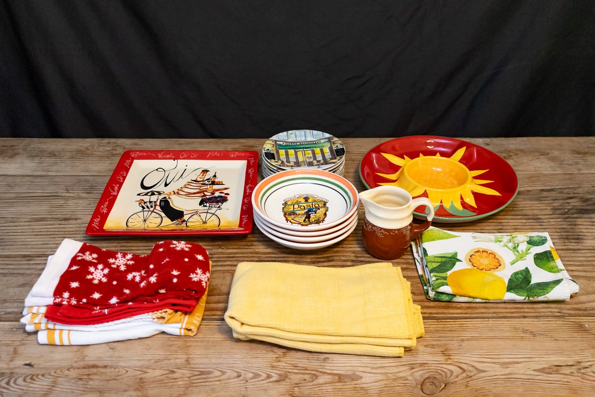 Magnetic Knife Stainless Steel Stand & Knives, Le Creuset 5.5 Quart Enameled Cast Iron Dutch Oven, Lenox Spyro Salad Set, Handcrafted Gib Harrington Live Edge Footed Cutting Board, Marquis by Waterford Crystal Ice Bucket & Crystal Pedestal Footed Bowl, Colorful Ceramic Serving Ware, Wood Cutting Boards, Cast Metal Serving Items, Cast Metal Bowls and Serving Dishes, J.A.Henckels Stainless Steel Flatware, Anolon Cookware Set, Gibson Home Dinnerware Set, Assorted White Dinnerware, Cutting Boards and Knives, Modern Colorful Bowls and Mugs, Art Pottery Bowls & Platters, Collection of Colorful Plates, Bowls & Accessories, Casserole Dishes, Collection of Decor and Serving Items, Kitchenware, Christmas Serving Items, Three Stainless Steel Cylinders, Griddle Skillet and Roasting Pan, Sunbeam VIsta Mixmaster, Kitchen Appliances, Collection of Servingware, Plastic Servingware, Baking Supplies and more.
