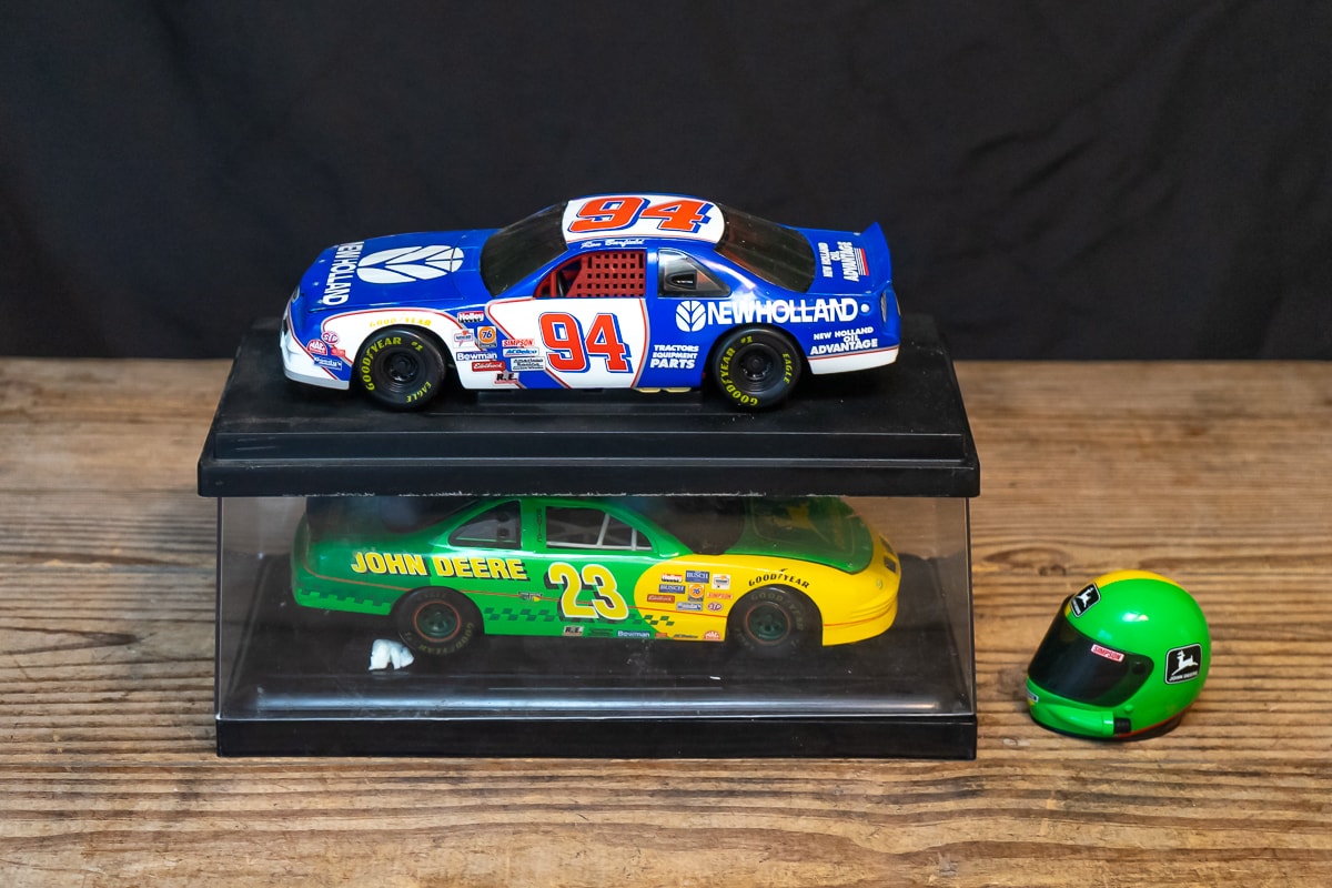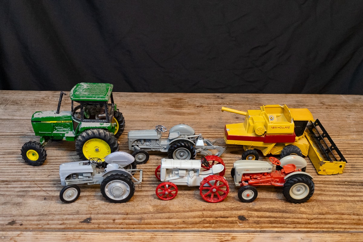 Four Ertl Toy Ford Tractors, Ertl Die Cast Toy Tractors and Combine, Brass Model Tractor Toys, Model Tractors and Ford Truck Bank and NASCAR Collectibles.