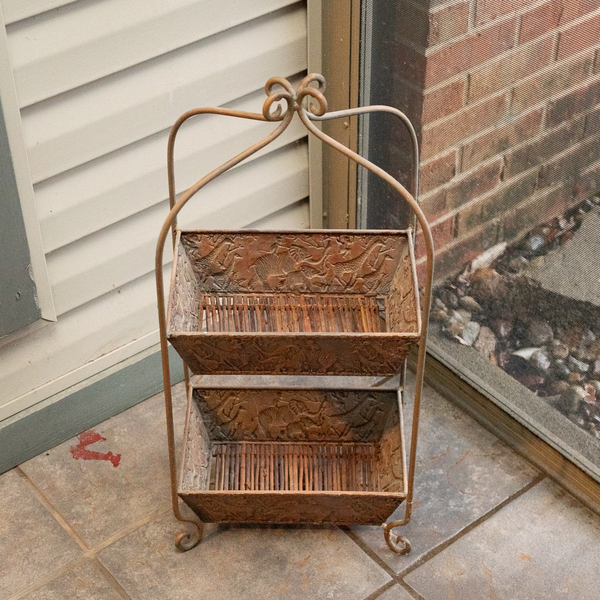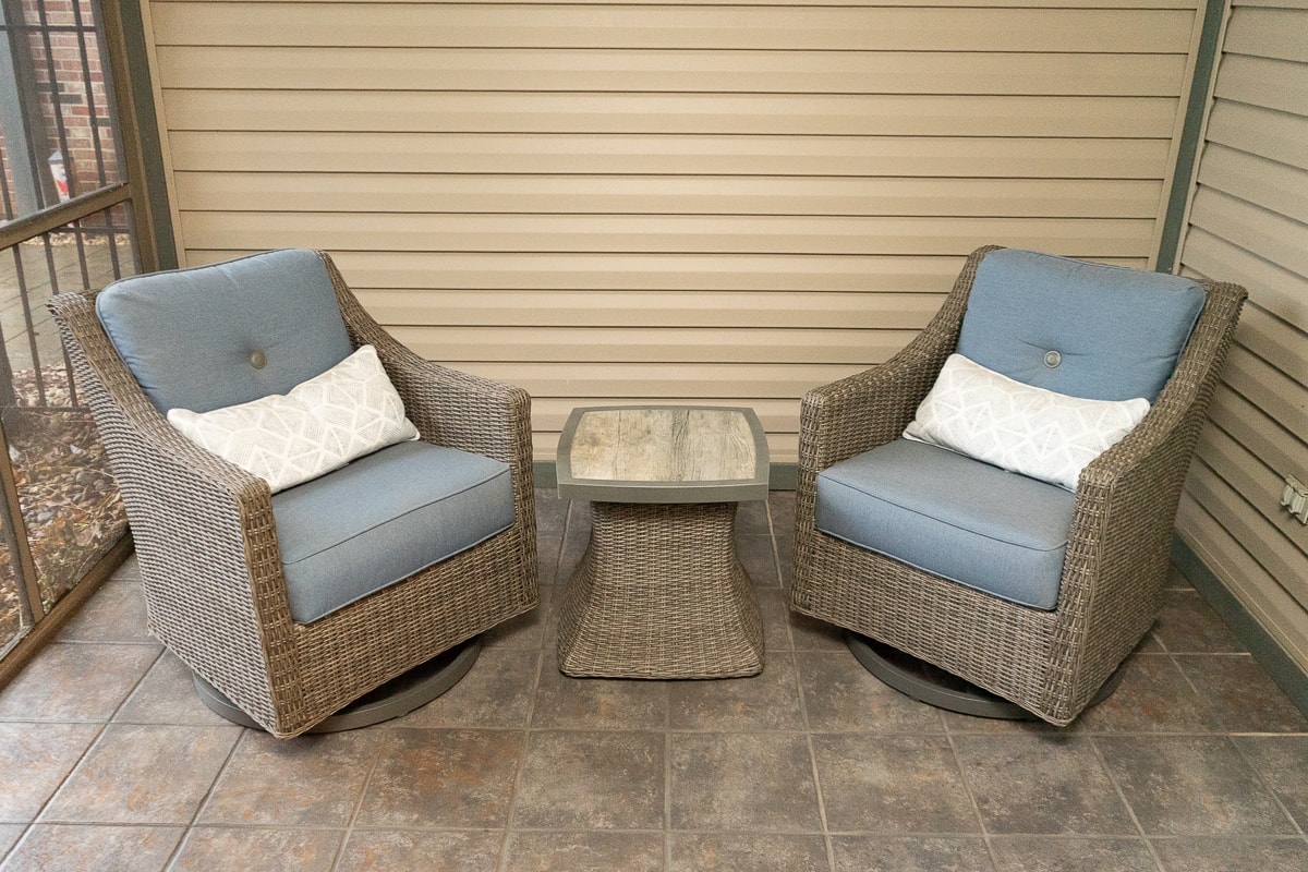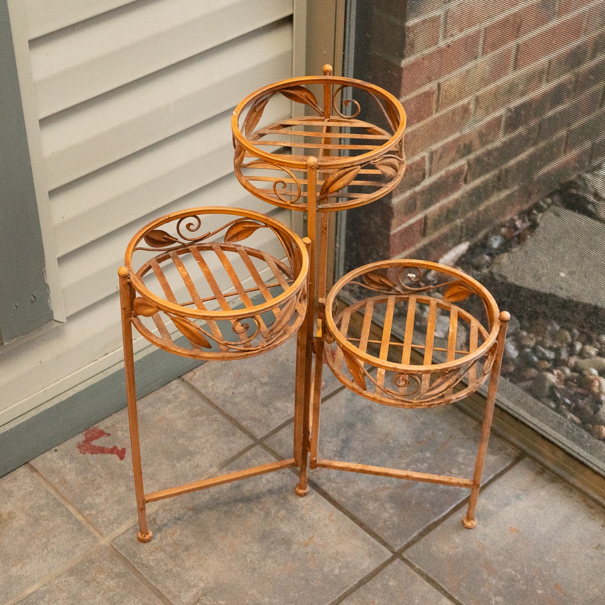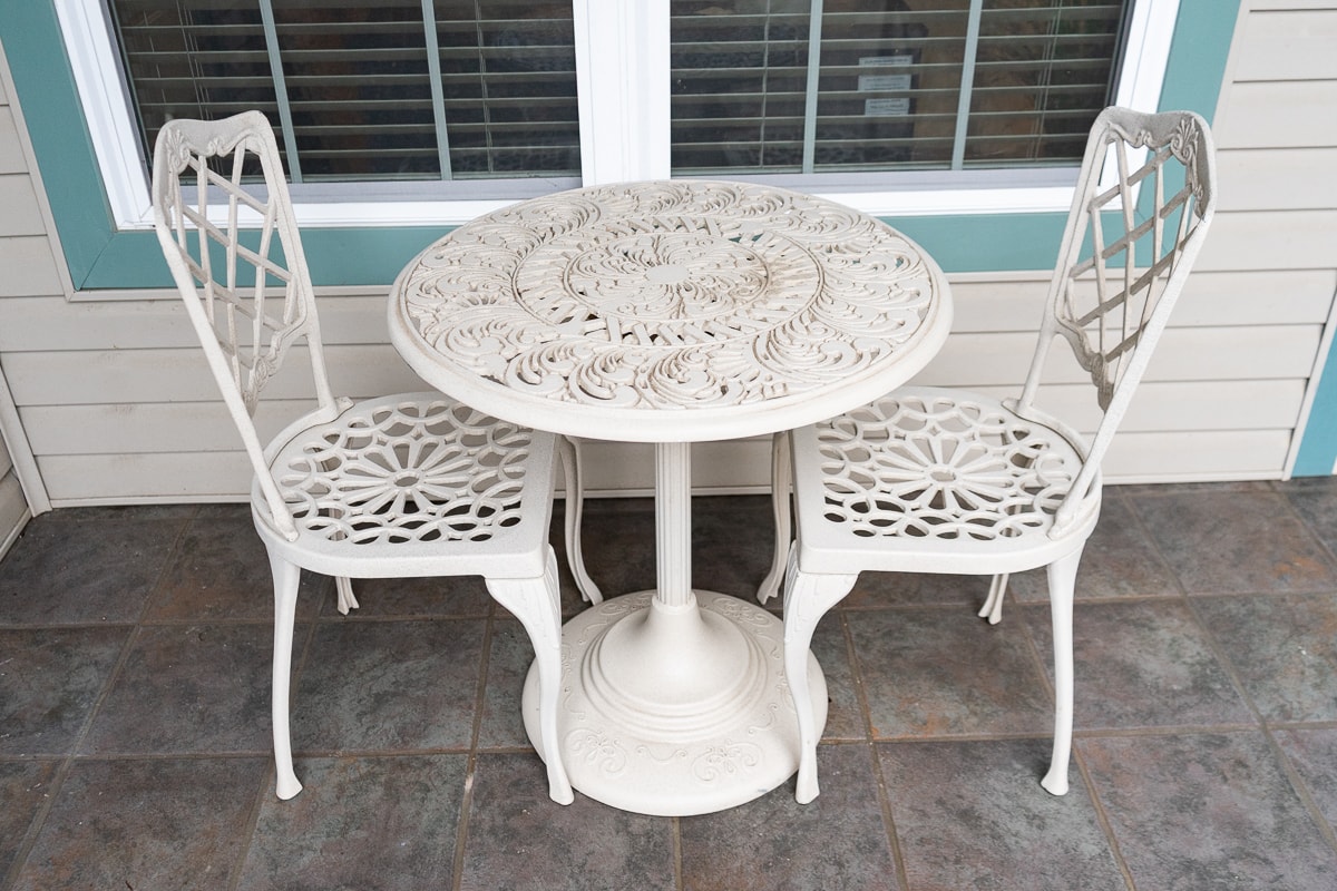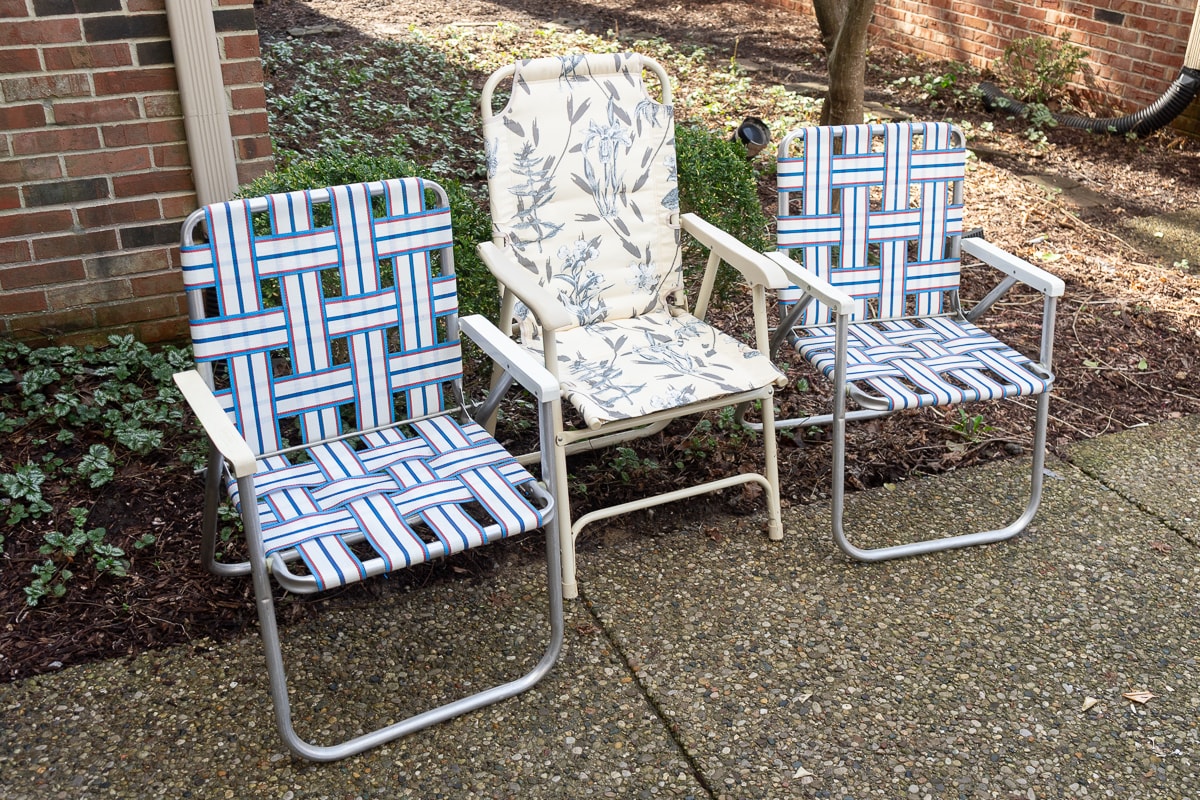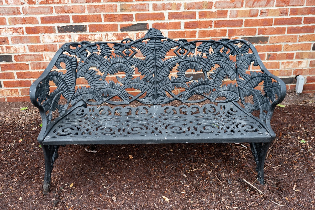 Heavy-Duty Cast Iron Fern Leaf Garden Bench, Cast Aluminum Bistro Table and Chairs Set, Tiered Metal Plant Stand, SunVilla Malibu 3-Piece Woven Outdoor Setting Set, Outdoor Tiered Metal Display Basket and Three Folding Lawn Chairs.