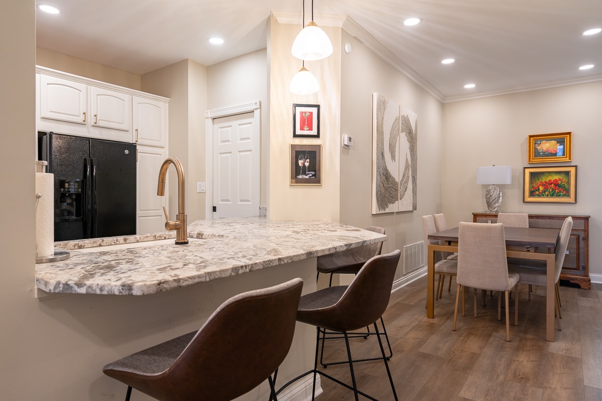 • Expanded counter top with breakfast bar