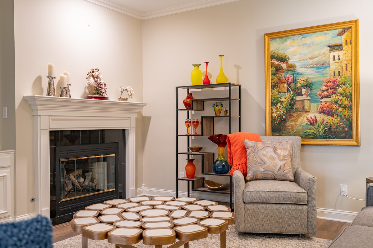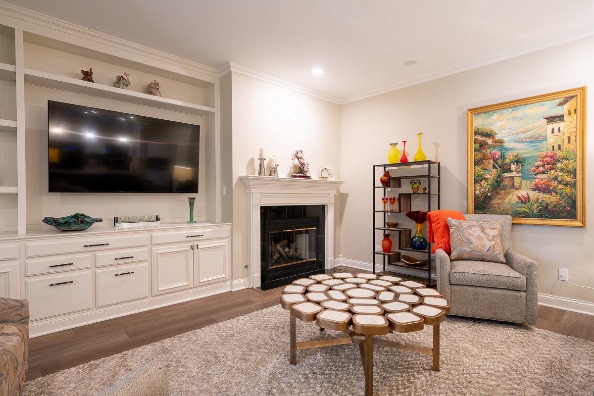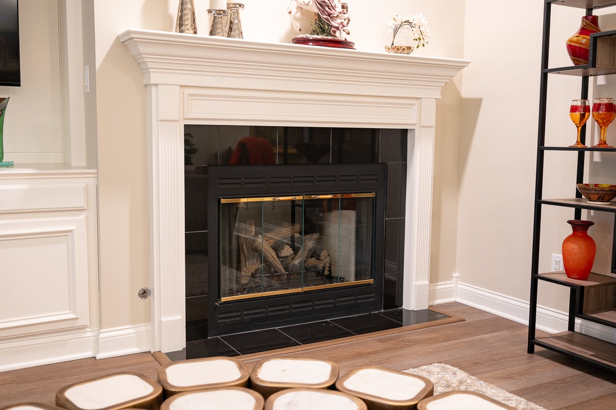 • Gas fireplace with custom mantle