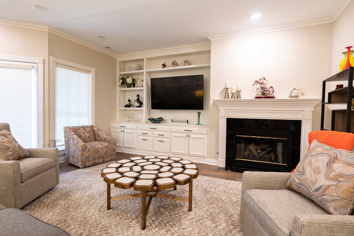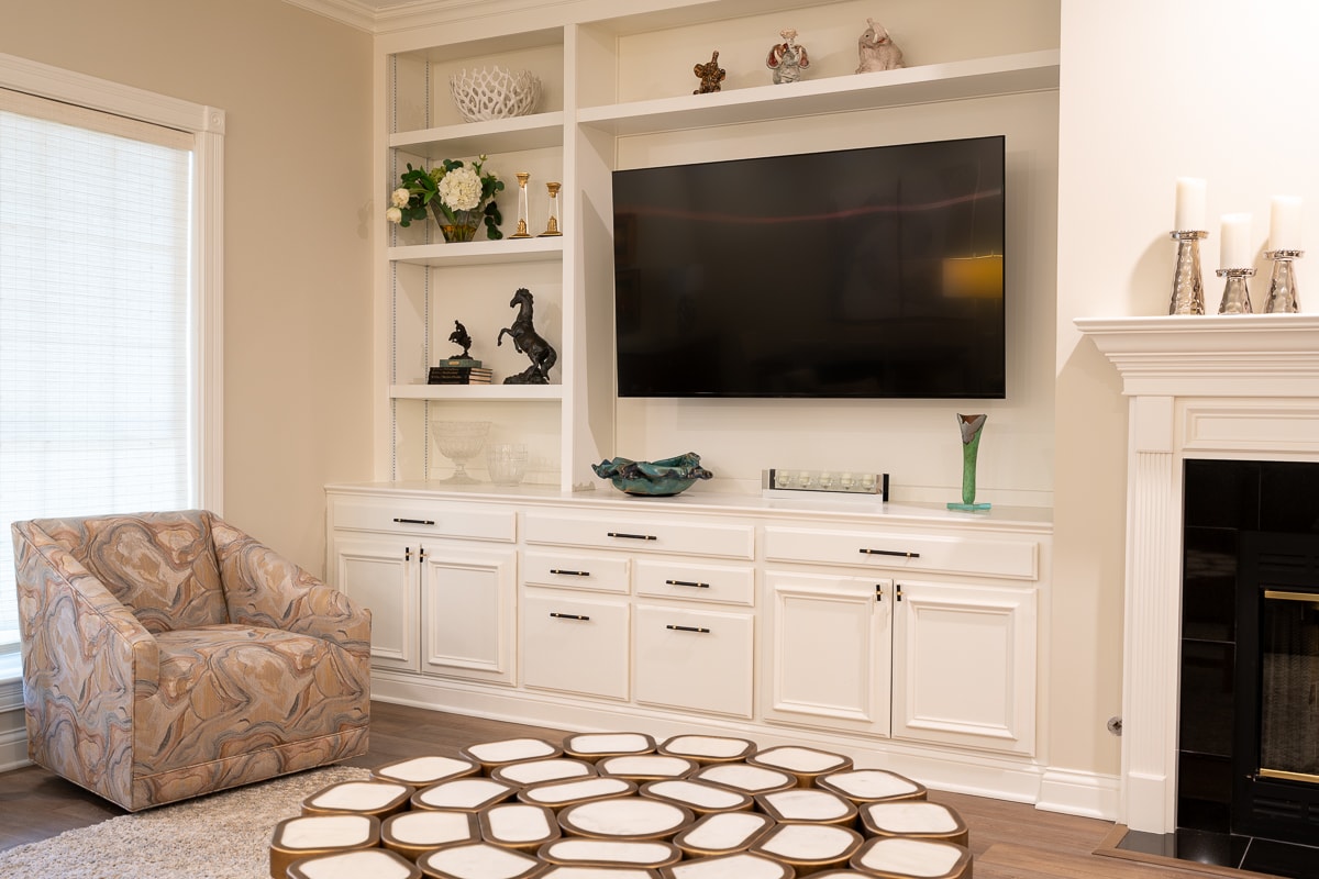 • Custom built-in bookshelves and cabinetry