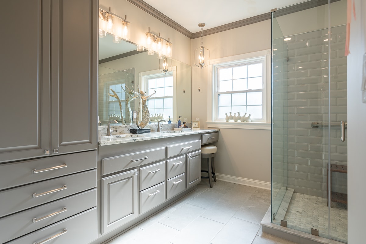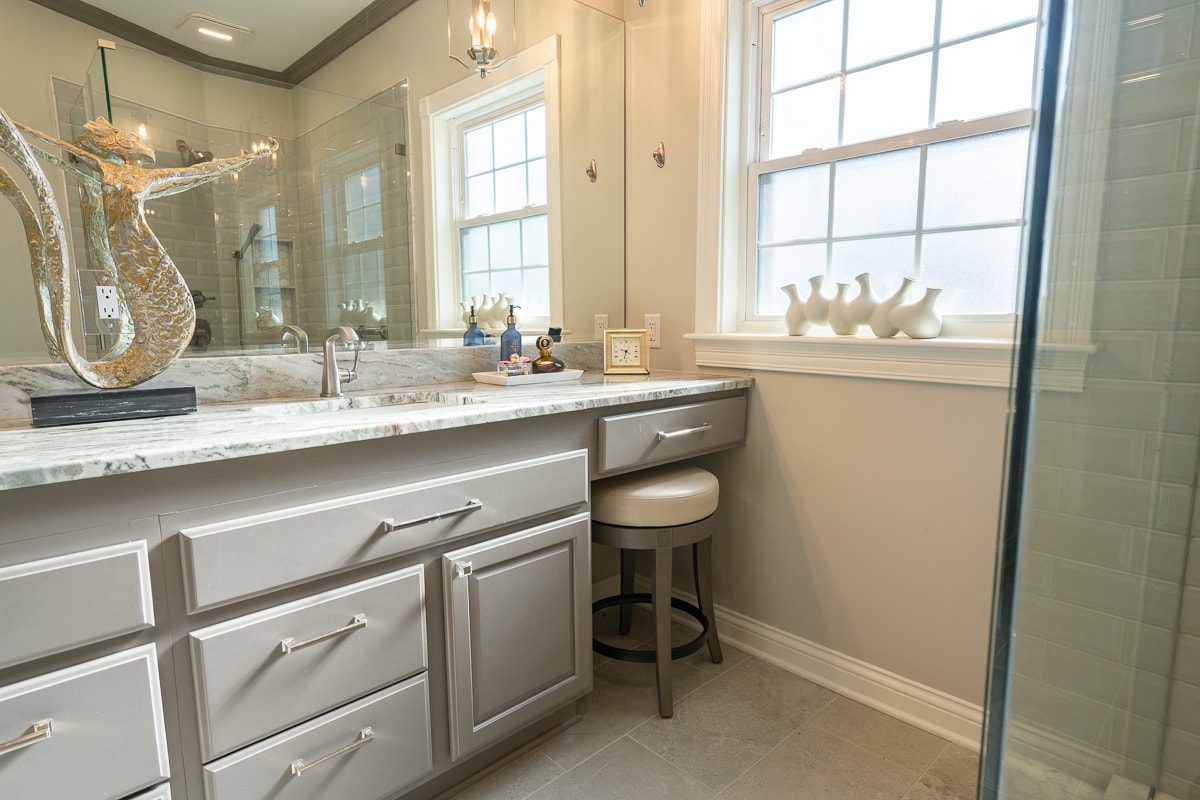 • Vanity with linen tower & make-up counter