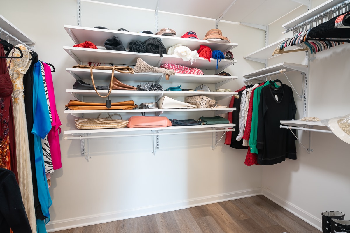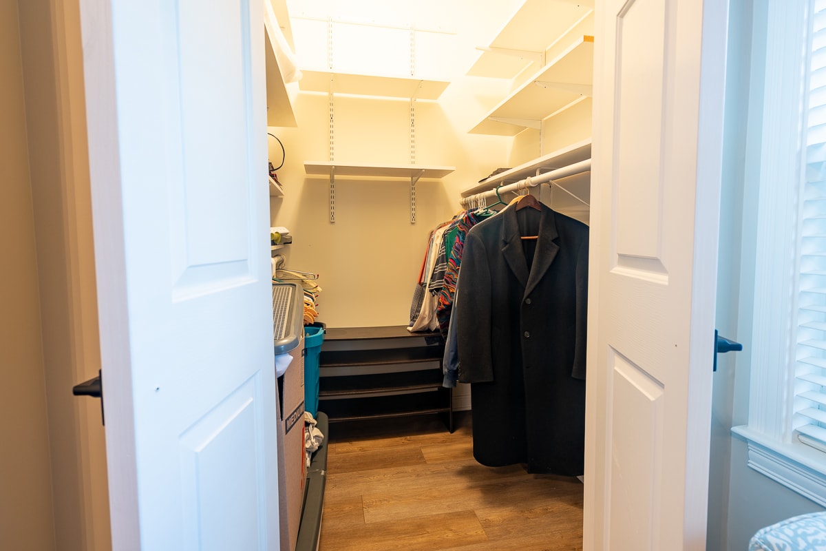 • Walk-in closet with custom shelving