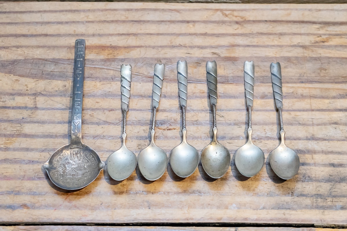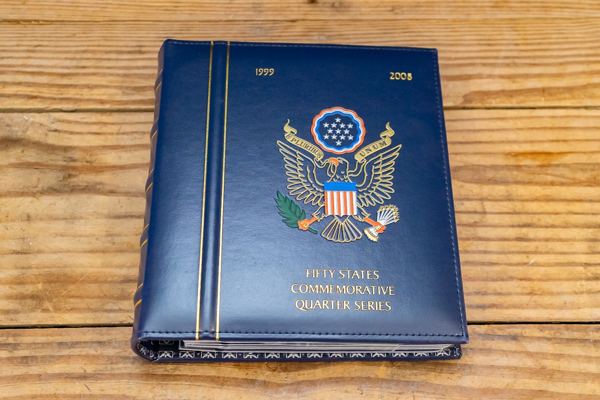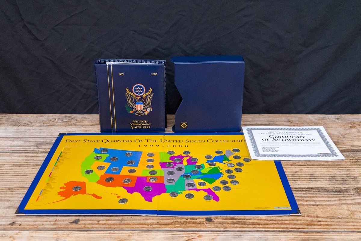 Seven Small Sterling Silver Spoons and Three Commemorative Statehood Quarter Binders.