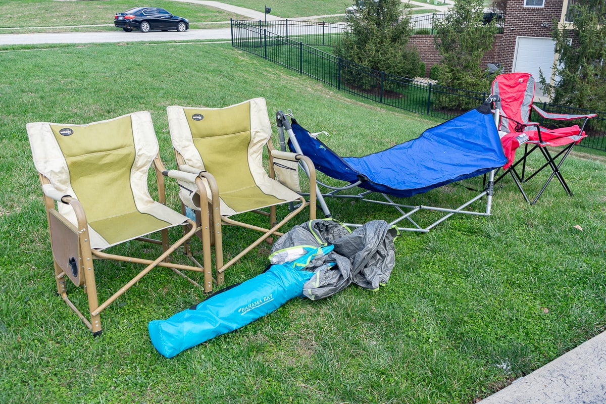 Lifetime Adventure Tower Metal Playset Swing Set (Buyer must dismantle & remove by 4/10/26), Two Frontgate Soleil Water Chaise Loungers, Anywhere Fireplace Southampton Series Teak Gel Fuel Torches, Townie Electra Light 6061 Aluminum Frame Bicycle, Ladies Golf Clubs & Slazenger Bag, Girls Bike and Sporting Goods, Field & Stream Tent, Folding Chairs, Tent and Hammock, Folding Rocking Lawn Chair, Folding Chairs, Bench and Cart, Two Hoses, Fishing Poles and Tackle, Bike Rack, Skateboard and Softball Gear, and more.