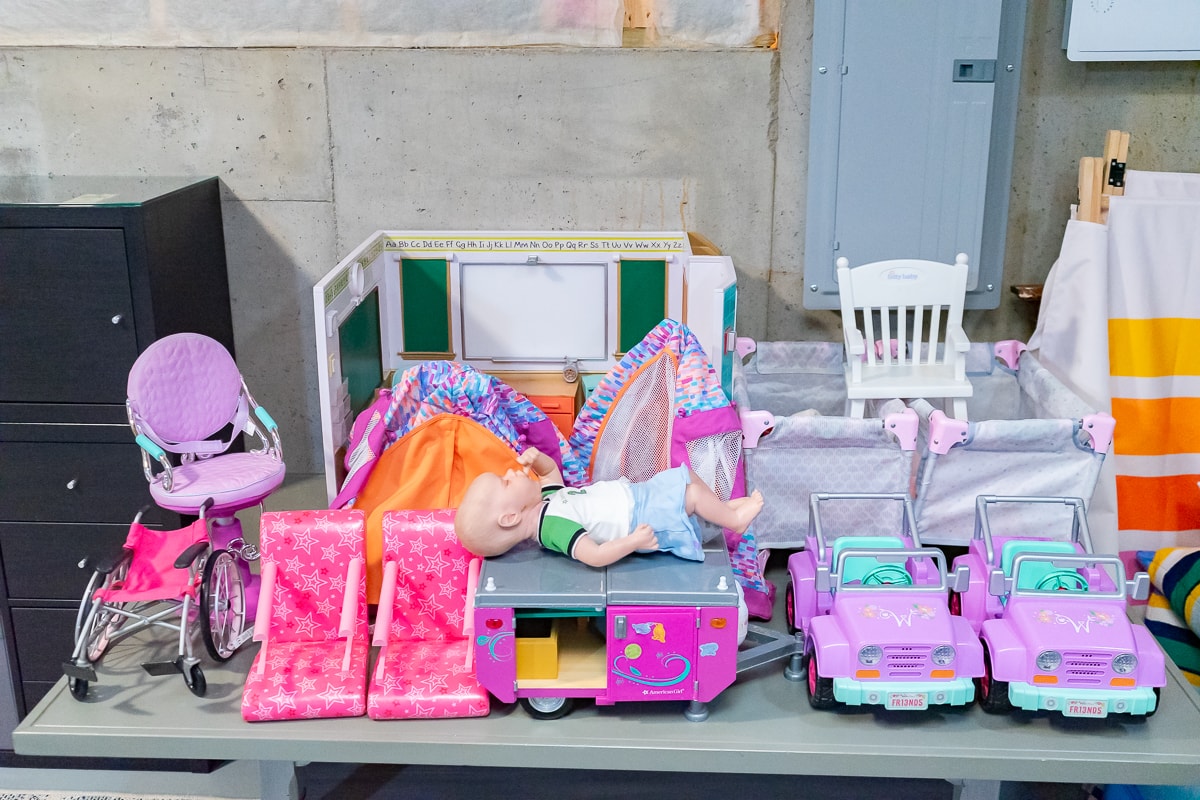 Large Collection of Toys and Games including Legos, Dolls and Accessories, Gruffalo Backpack and Books, Puzzles, Life-Size Tetris Set, Barbie Dolls, 1960s The World of Barbie Cases and Clothing, Child Furniture, Collection of Children’s Books, Paw Patroller, Basketball Goal, Toys and Games, WeeHoo Child Bike Seat Attachment, Diecast Semi Truck and Trailers, Modular Kids’ Play Couch, Child Furniture, Children’s Costumes, Collection of Puzzles, Qwirkle and Legos, Collection of DVDs and Blu-rays, American Girl Doll Accessories, Kids at Play Sign, Toys, Water Bottles & Games.
