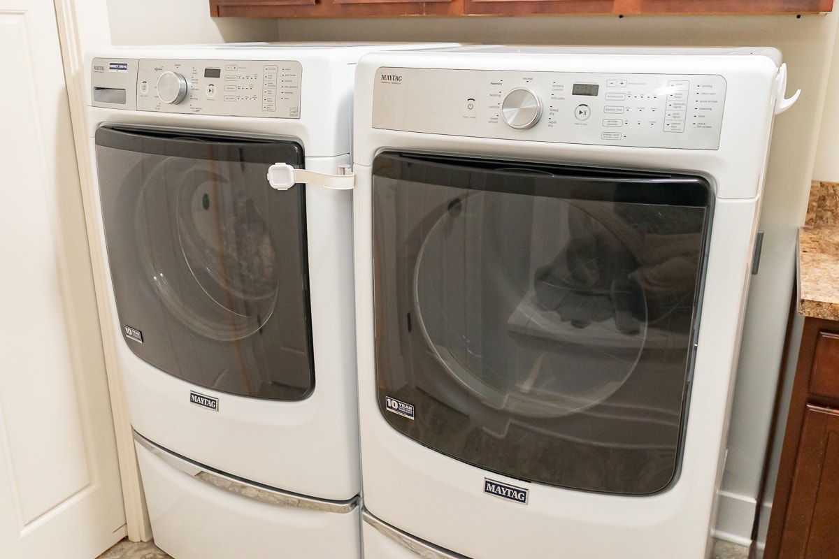 Maytag Front Loading Washer and Dryer, GE Deep Freezer & GE Microwave.
