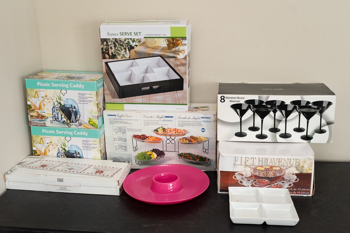 GE Profile Opal Ice Maker, Frontgate Optima Chill Cell Beverage Dispenser, Made-In Carbon Steel Griddle and Press, Three-Piece Crock Pot Hook Up Box Set, Two Style Setter Bradford Beverage Dispensers, Serving Trays, KitchenAid Pro 500 Stand Mixer, KitchenAid Vegetable Sheet Cutter, KitchenAid Hand Mixer, Grater and Cuisinart Hand Blender, Server Stainless Steel Topping Dispenser, Lodge 14SK Cast Iron Skillet, Two Cast Iron Skillets, Frontgate Serving Items, Modern Galvanized Serving Items, Catering Display Supplies, International Stainless Flatware Set, Plastic On Ice Units, Serving Items, Baskets and Plastic Serving Items, GE Microwave, U of L Cardinals Chip and Dip Tray, Cangshan S1 Series Knife Set, Made-In Skillets, Made-In Wok, Made-In Graphite 10″ Frying Pan, Made-In Graphite 10″ Frying Pan, Zulay Kitchen Heavy-Duty Juicer, JBL Party Box On-The-Go Portable Speaker, Collection of Cookbooks, J.A. Henckels Stainless Steel Cookware, Enameled Cast Iron Cookware, Collection of Stainless Steel Cookware, Pyrex Baking Dishes and Corning Ware Dish, Pampered Chef Bakeware, Collection of Tumblers, Food Saver and Accessories, Collection of Modern Kitchen Appliances, KitchenAid Battery Power Hand Blender, Collection of Dinnerware Dishes, Collection of Baking Supplies, Contents of Pantry, Two Totes of Christmas Baking Supplies and Books, Collection of Flatware and Kitchenware, KItchenAid Food Grinder and Attachments, Modern Kitchenware, Modern Knives, Granite Ware 20 Quart Pressure Canner, Canning Supplies, Magnolia Flower Bowls and Butterfly Dinnerware Set, Joule Sous Vide and Viski Smoked Cocktail Set and more.