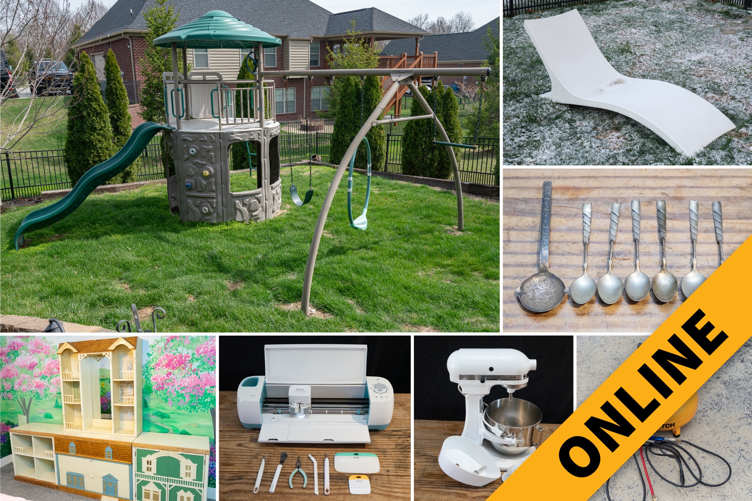 We are honored to present the personal property auction of the Joanna Kilburn Estate. Highlights include a Lifetime Adventure Tower metal playset swing set, Frontgate Soleil water chaise loungers, Townie Electra Light bicycle, ladies golf clubs, quality kitchen and servingware items, entertaining pieces, furniture, home furnishings and accessories, Maytag front load washer & dryer, GE deep freezer, coins & silver, selection of children’s toys, books, and arts and craft supplies, tools, hardware and more.