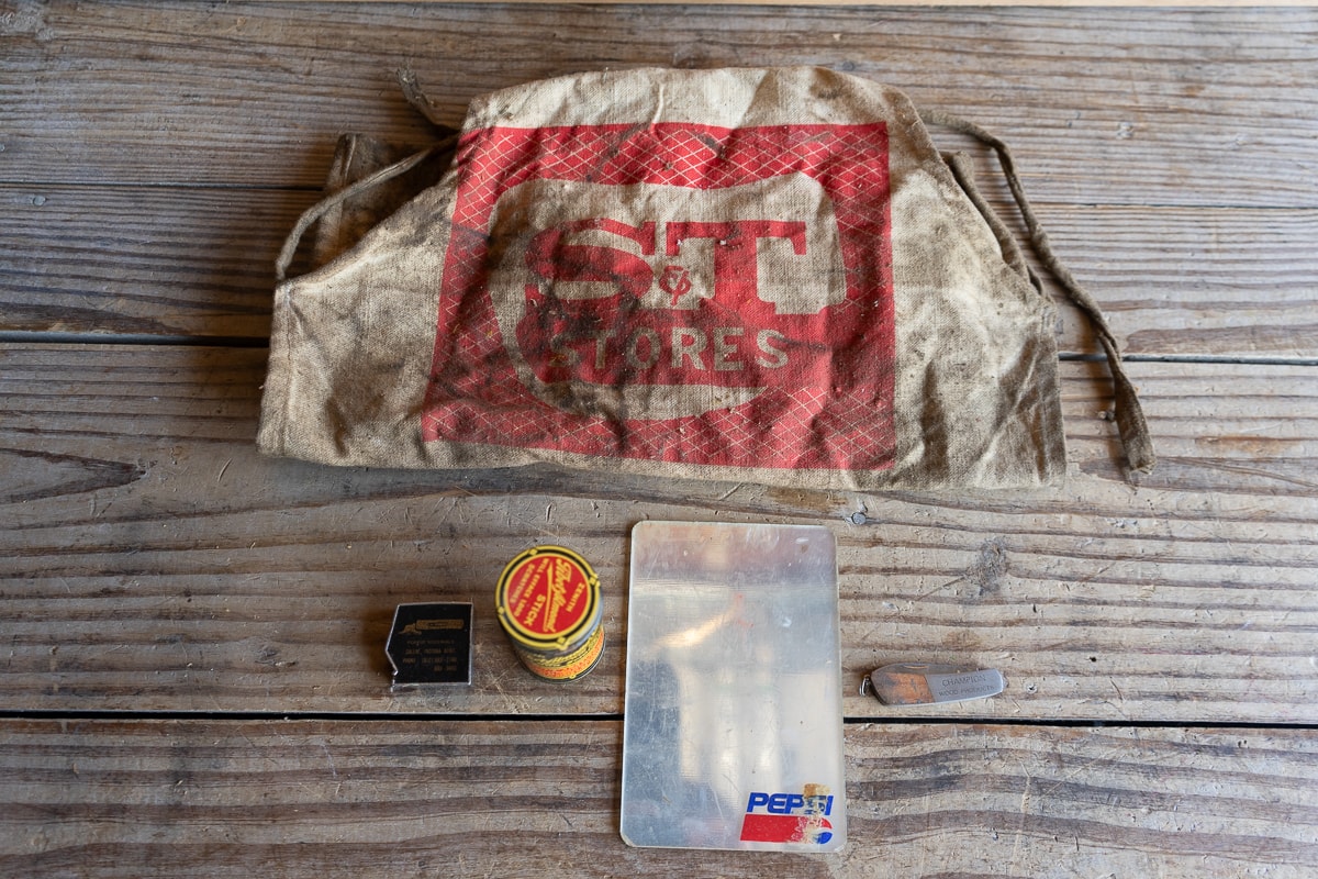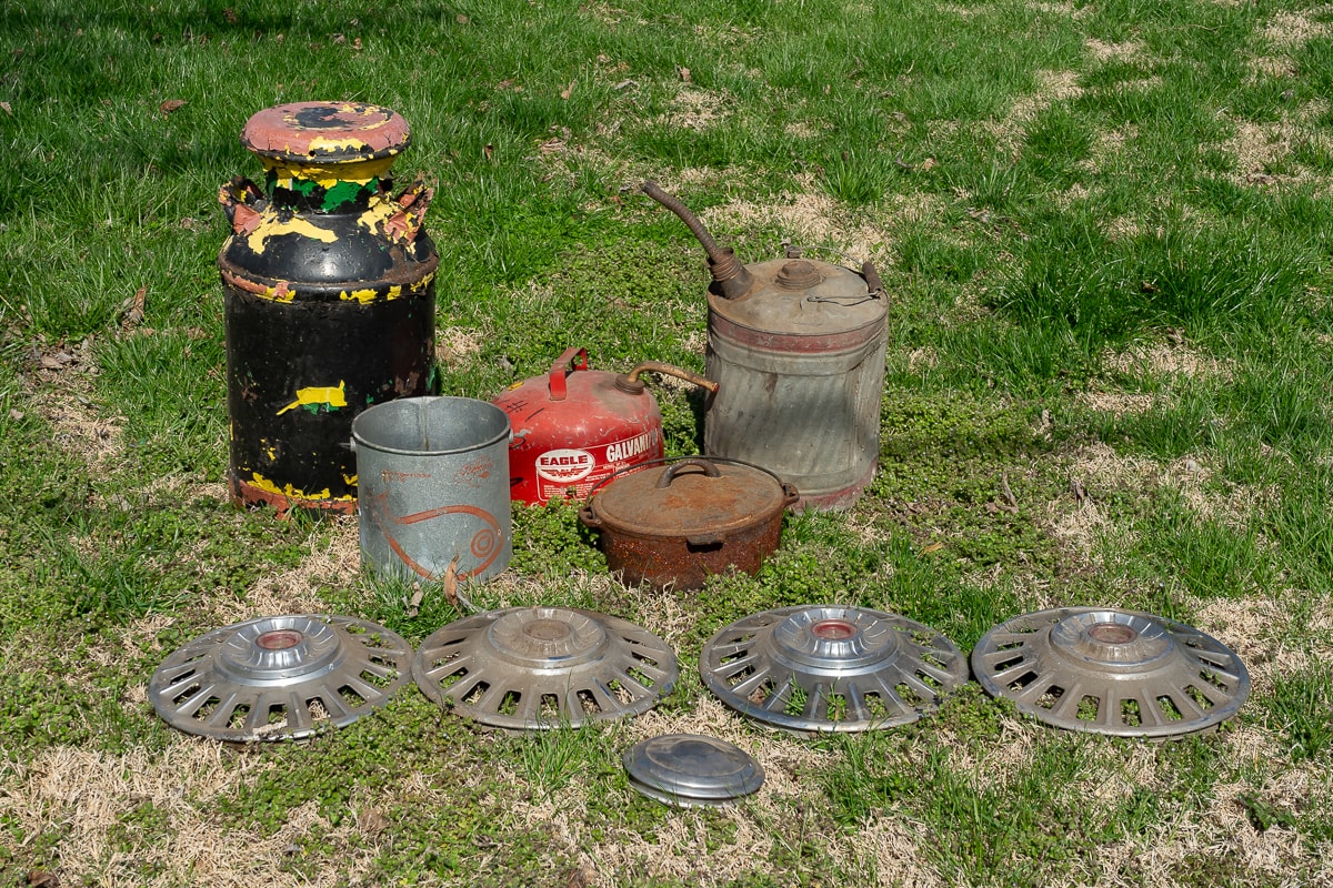 Large Decorative Fishing Lures, Texaco Outboard Motor Oil Can, Advertisement Items, L.S. Brown 6-Gallon Metal Gas Can, Pocket Knives and Sharpening Items, Elgin Pocket Watch and Grandfather Clock Case, John Deere Hats and Sign, Cast Iron Tea Kettle and Sad Irons, Louisville Stoneware Vase, Lil’O John Deere Tractor Club Sign, Milk Can, Galvanized Gas Cans, Hubcaps and More, Jeffersonville High School Letterman Sweater, Collection of Milk Glass, Milk Glass Hobnail Table Lamp, Taxidermy Bass, Standard Textbook of Cosmetology Book, John Deere Stocking Holder and Key Rack, Bird Dog Velvet Painting, Antique Zenith Radio, Antique Damaged Ovoid 3-Gallon Stoneware Jug, Vintage Patches, Wooden Hall Tree & Hand-Stitched Bow Tie Quilt.
