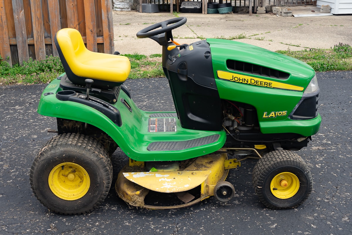 John Deere LA105 Riding Lawn Mower with 42” cut, in running condition with a new battery.