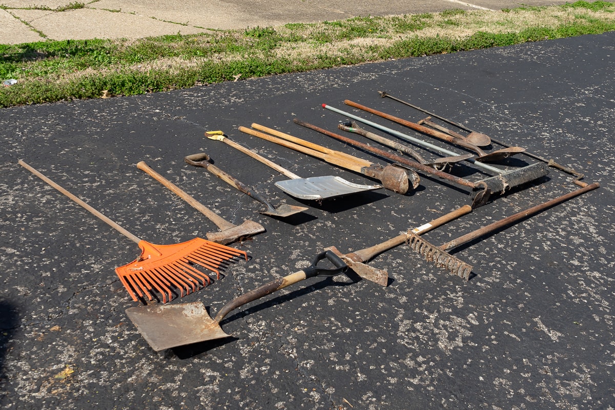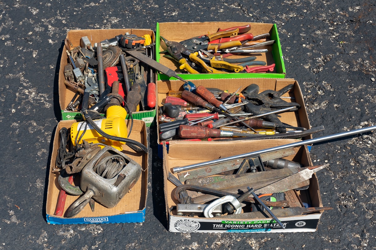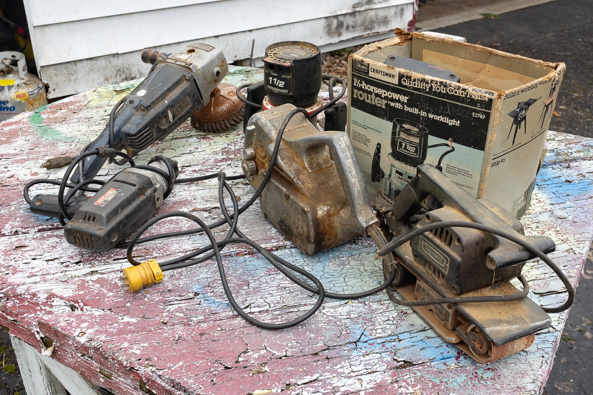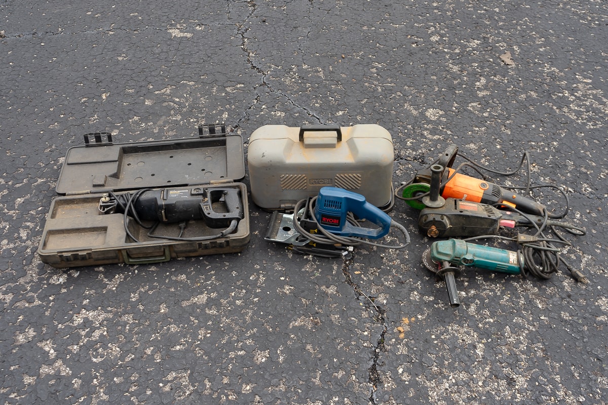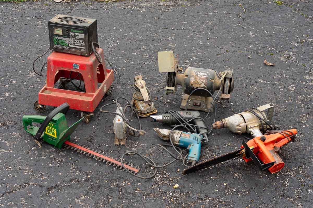 Large Collection of Craftsman Tools, Craftsman Sockets and Ratchets, Large Collection of Hand Tools, Yard Tools, Machinist Vises and Craftsman Doweling Jig, Central Pneumatic 8-Gallon Air Compressor, Bar Clamps, Outdoor Work Station, Folding Aluminum Ramp, Cincinnati Tool Co. Cast Iron Bar Clamps, Ten C-Clamps, Locking Pliers, Clamps, Sockets, Ratchets and Wrenches, Central Pneumatic Tools, Pneumatic Air Tools, Two Folding Aluminum Ladders, Bolt Grip Puller, Tap & Die, Sockets and More, Pneumatic Tools, Stacking Tool Chest and Contents, Craftsman Band Saw and Table Saw, 14″ Abrasive Cut-Off Saw and Rolling Stand Table, Electric Winch and Hydraulic Floor Jack, 52″ All-Season Plow, Welding Helmet, Torque Wrench and Battery Tester, Creeper, Jack Stands and Hydraulic Jacks, Heavy-Duty 4-Ton Hydraulic Tool Portable Power, Table of Hardware and Tools, Iowa Export-Import John Deere Style Seat, Collection of John Deere Parts, Craftsman Shop-Vac and Extension Cords, Poulan 2000 Chainsaw, Contents of Workbench, 14′ Aluminum Extension Ladder, Tiller and Gas Cans, Electric Pressure Washer and Trimmer, Log Chains and Come-Along, Household Tools, Collection of Electric Power Tools, Battery Charger, Grinder and Assorted Power Tools, & Contents of Shed.