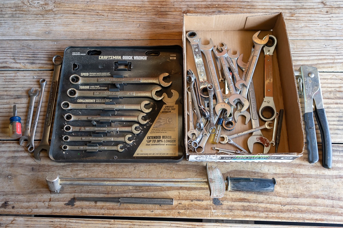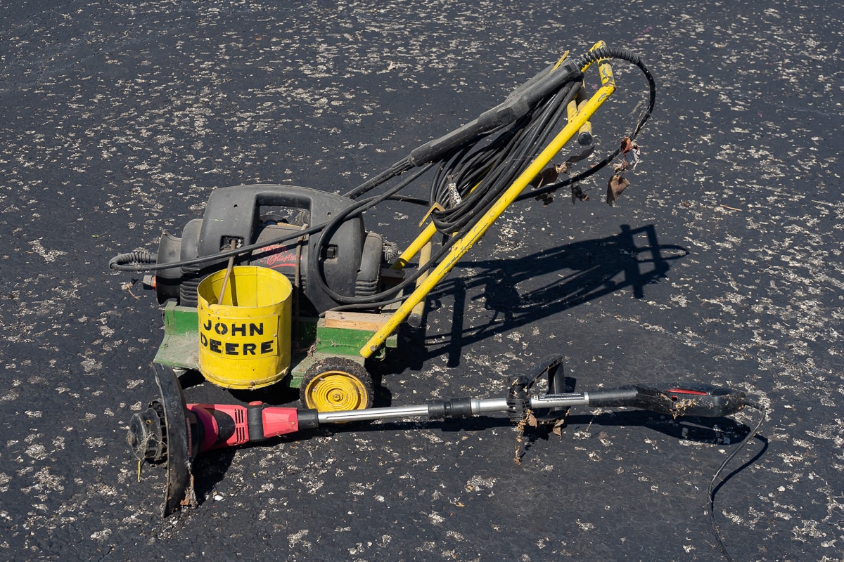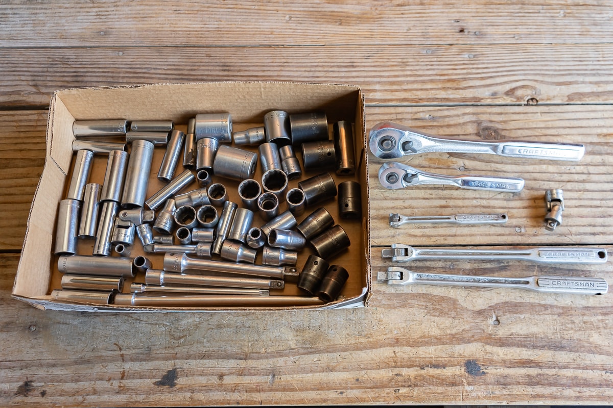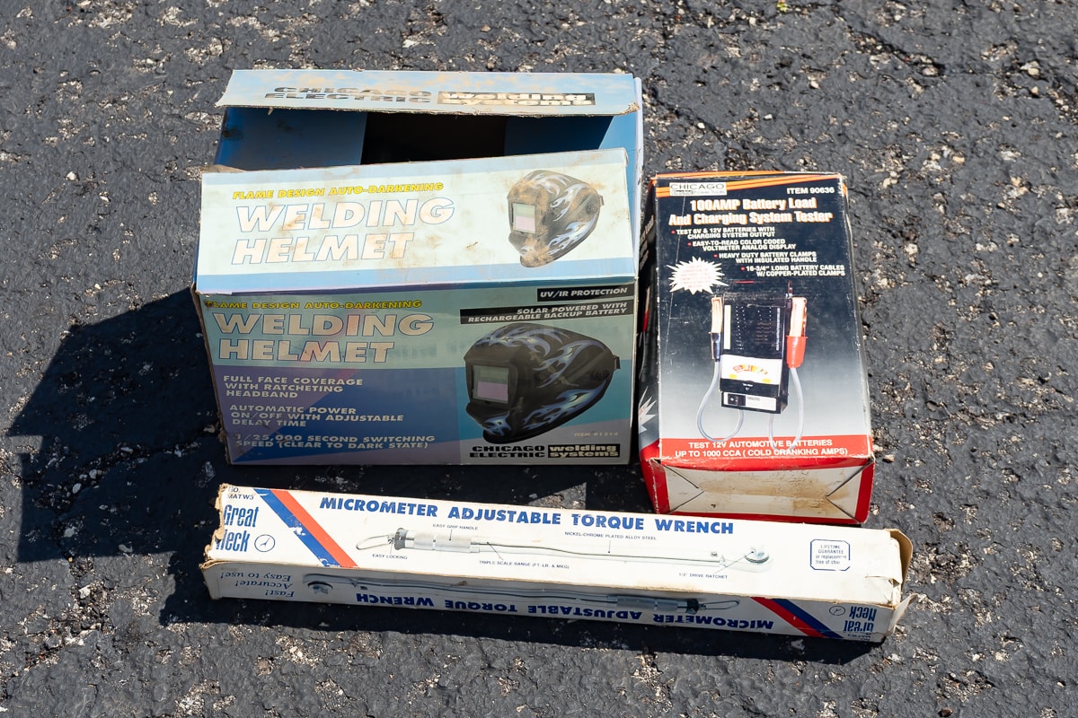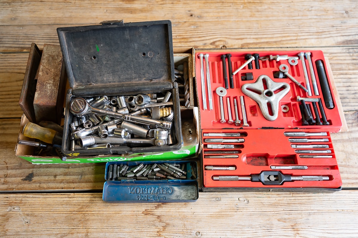 Large Collection of Craftsman Tools, Craftsman Sockets and Ratchets, Large Collection of Hand Tools, Yard Tools, Machinist Vises and Craftsman Doweling Jig, Central Pneumatic 8-Gallon Air Compressor, Bar Clamps, Outdoor Work Station, Folding Aluminum Ramp, Cincinnati Tool Co. Cast Iron Bar Clamps, Ten C-Clamps, Locking Pliers, Clamps, Sockets, Ratchets and Wrenches, Central Pneumatic Tools, Pneumatic Air Tools, Two Folding Aluminum Ladders, Bolt Grip Puller, Tap & Die, Sockets and More, Pneumatic Tools, Stacking Tool Chest and Contents, Craftsman Band Saw and Table Saw, 14″ Abrasive Cut-Off Saw and Rolling Stand Table, Electric Winch and Hydraulic Floor Jack, 52″ All-Season Plow, Welding Helmet, Torque Wrench and Battery Tester, Creeper, Jack Stands and Hydraulic Jacks, Heavy-Duty 4-Ton Hydraulic Tool Portable Power, Table of Hardware and Tools, Iowa Export-Import John Deere Style Seat, Collection of John Deere Parts, Craftsman Shop-Vac and Extension Cords, Poulan 2000 Chainsaw, Contents of Workbench, 14′ Aluminum Extension Ladder, Tiller and Gas Cans, Electric Pressure Washer and Trimmer, Log Chains and Come-Along, Household Tools, Collection of Electric Power Tools, Battery Charger, Grinder and Assorted Power Tools, & Contents of Shed.