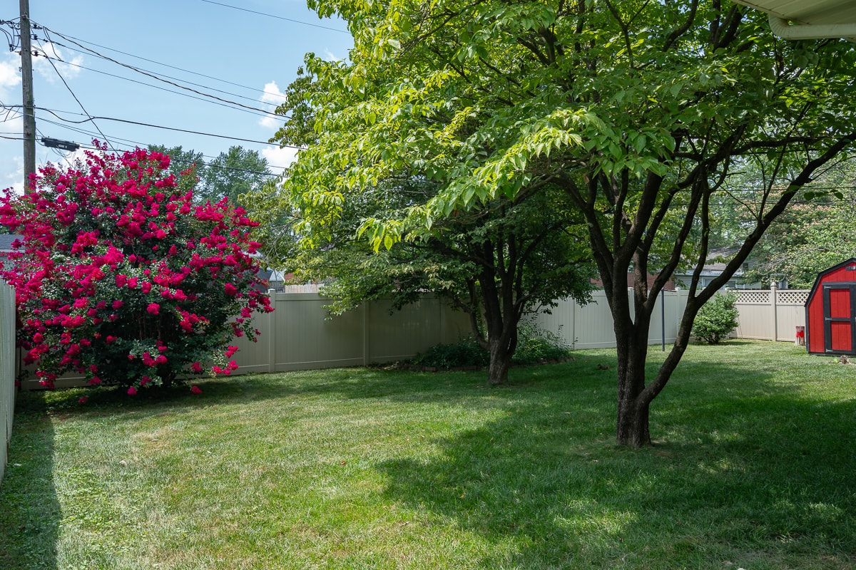 Outside, the level, landscaped lot includes two storage sheds for additional space and utility.