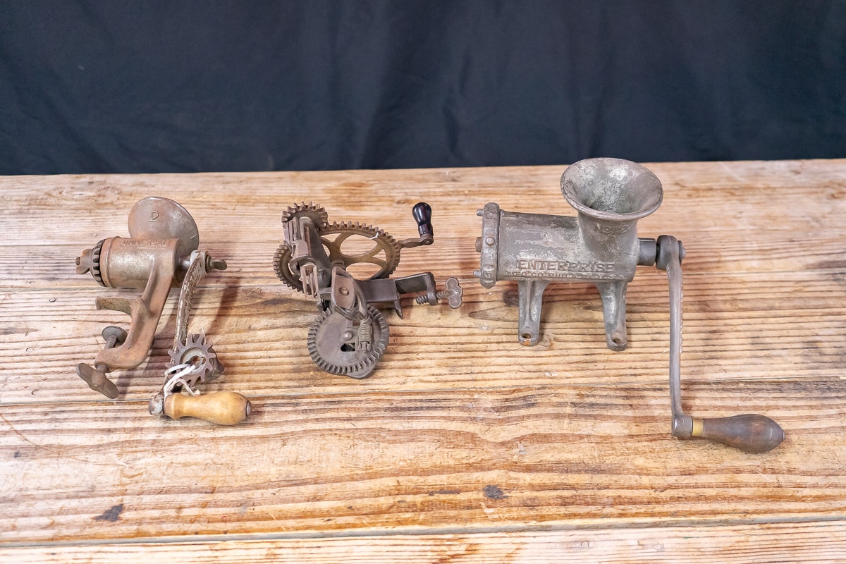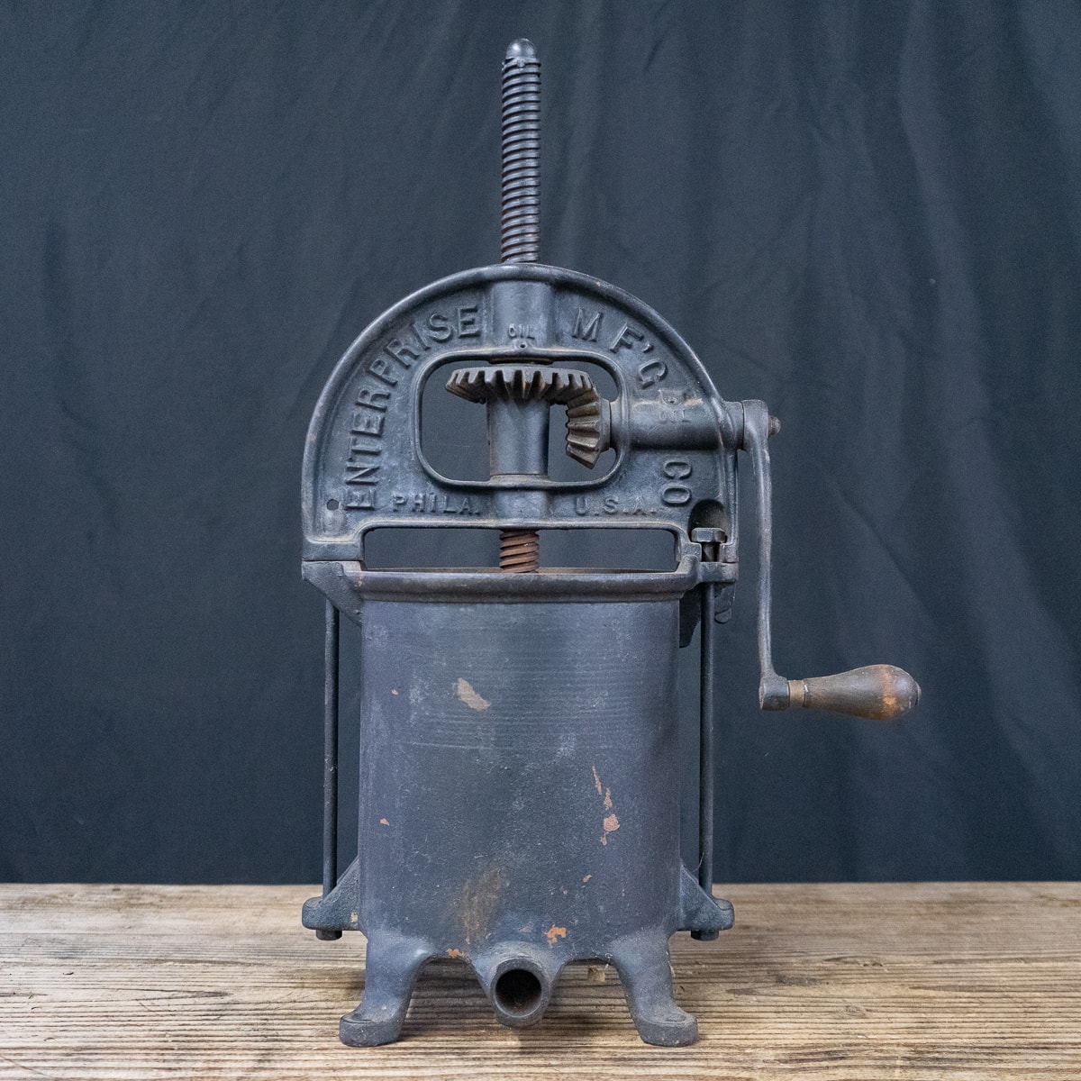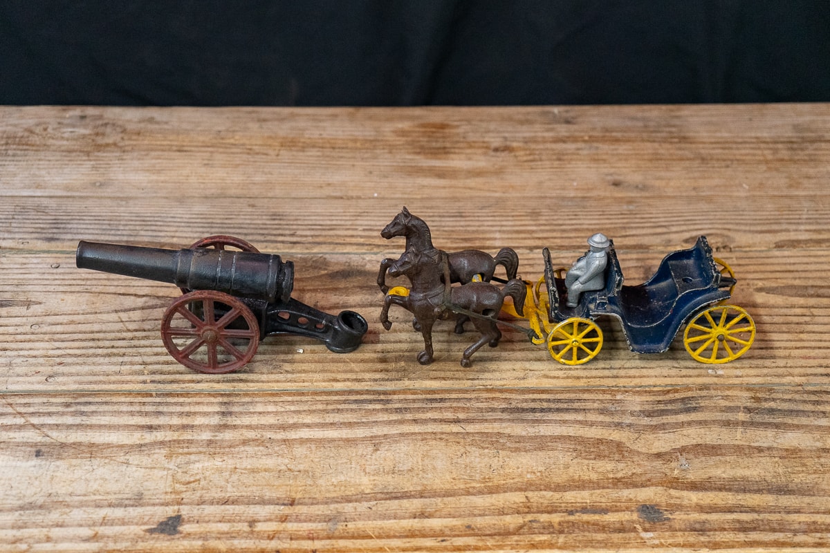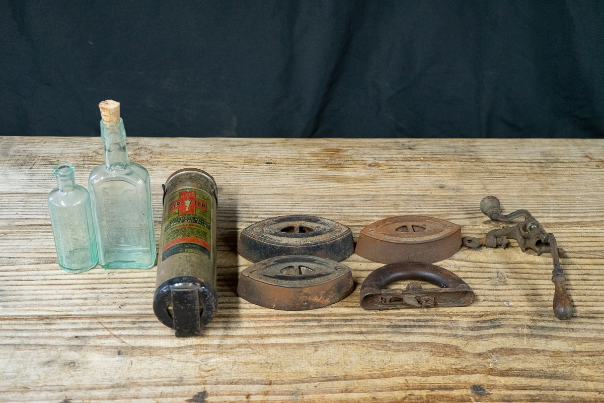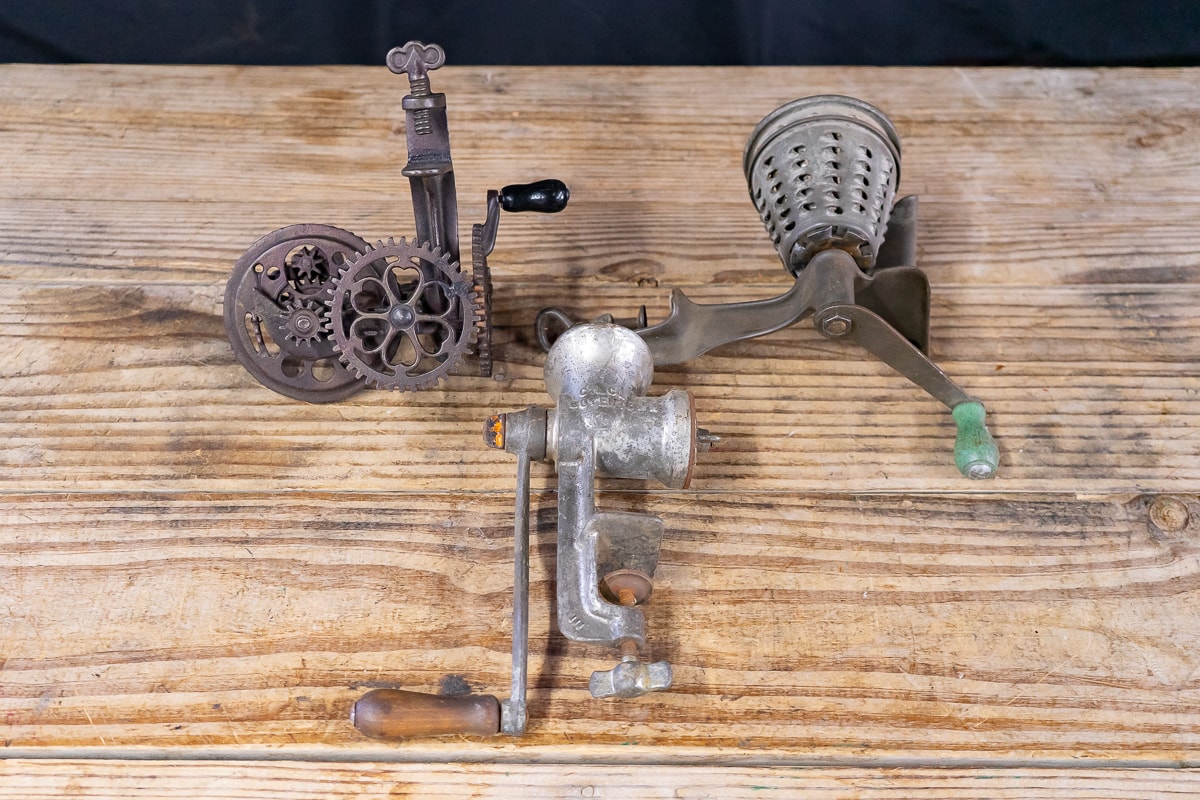 Antique Enterprise Cast Iron Lard Press, Antique 1875 Crown Cast Iron Brass Fluting Iron, Antique Enterprise Cast Iron Lard Press, IH Louisville Cast Iron Cadet Soldier, Black Hawk Cast Iron Corn Sheller, Enterprise Cast Iron Lard Press, Antique Enterprise Cast Iron Lard Press, Griswold No. 6 Cast Iron Skillet, Griswold No 5 Cast Iron Skillet, 1875 Crown Cast Iron Brass Fluting Iron with Box, Restored Cast Iron Scale, Two Cast Iron Corn Stick Pans, Queen Miniature Cast Iron Cooking Stove, Troemner Cast Iron Bakery Scale, Ideal No. 2 Miniature Cast Iron Stove, Chicago Scale Co. Crowfoot Cast Iron Scale, Antique Cast Iron Beam and Other Scales, Two Antique Cast Iron Toy Stoves, Big Bang Cast Iron Cannon and Horse Drawn Carriage, “Corona” Cast Iron Hand-Crank Corn Mill, Miniature Cast Iron Coffee Grinder, Michelin Man Cast Iron Figure Toy
