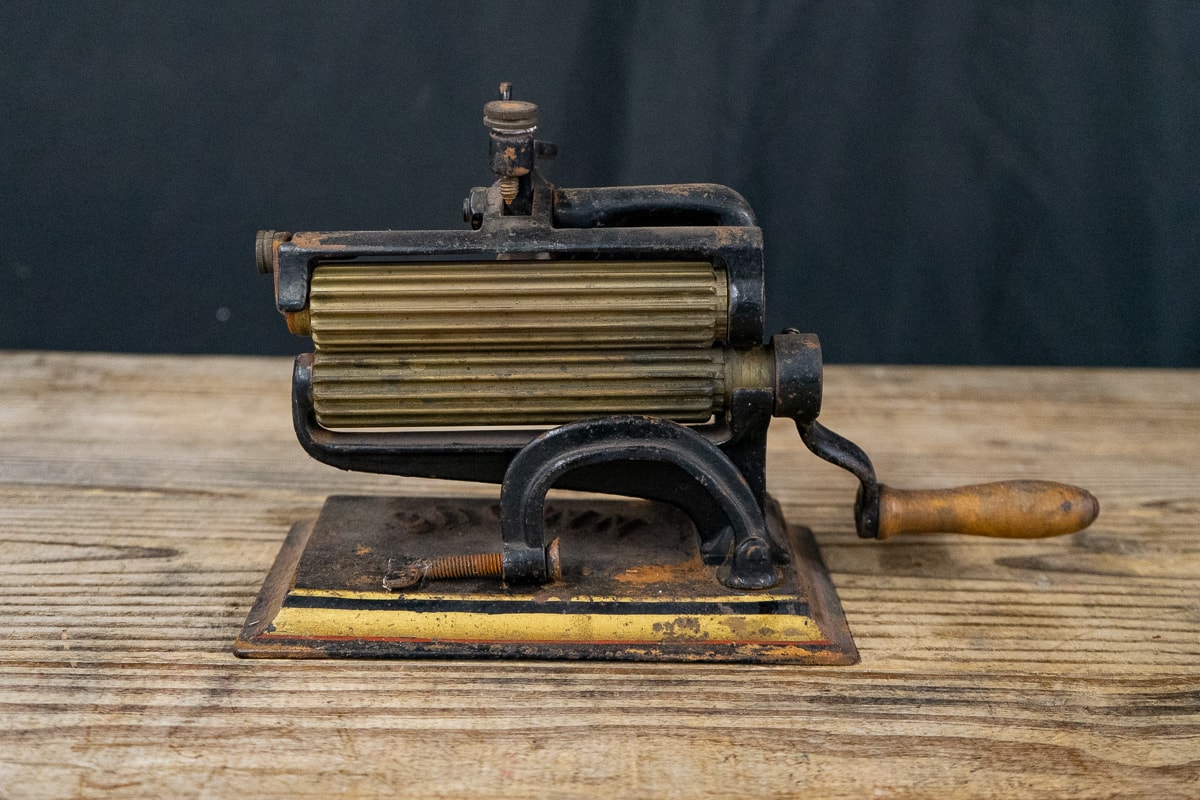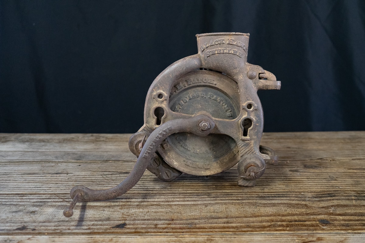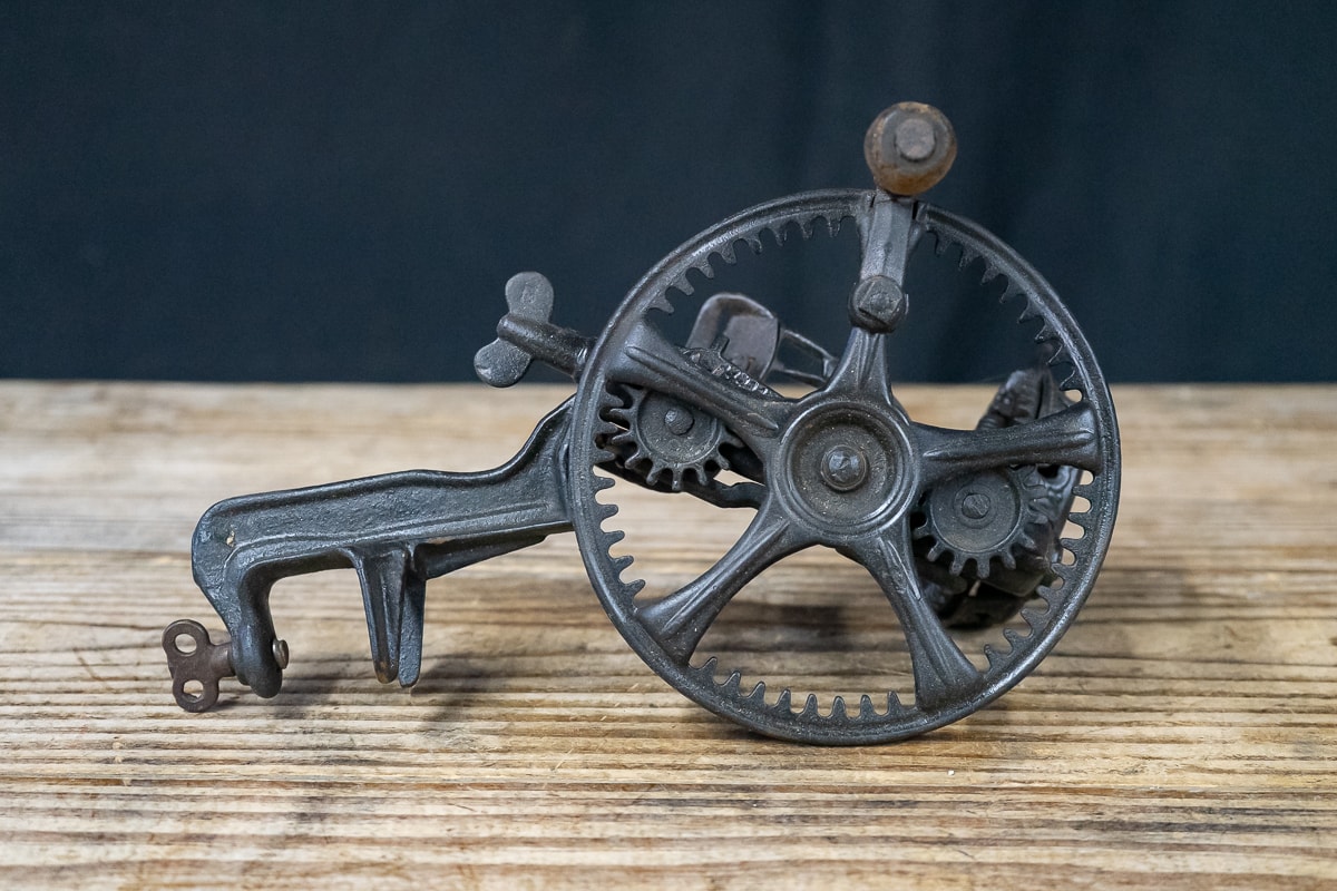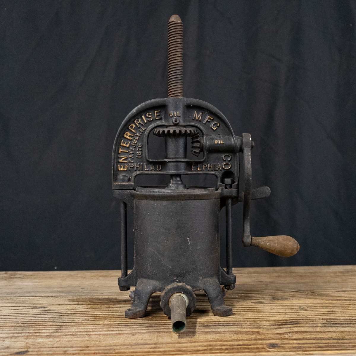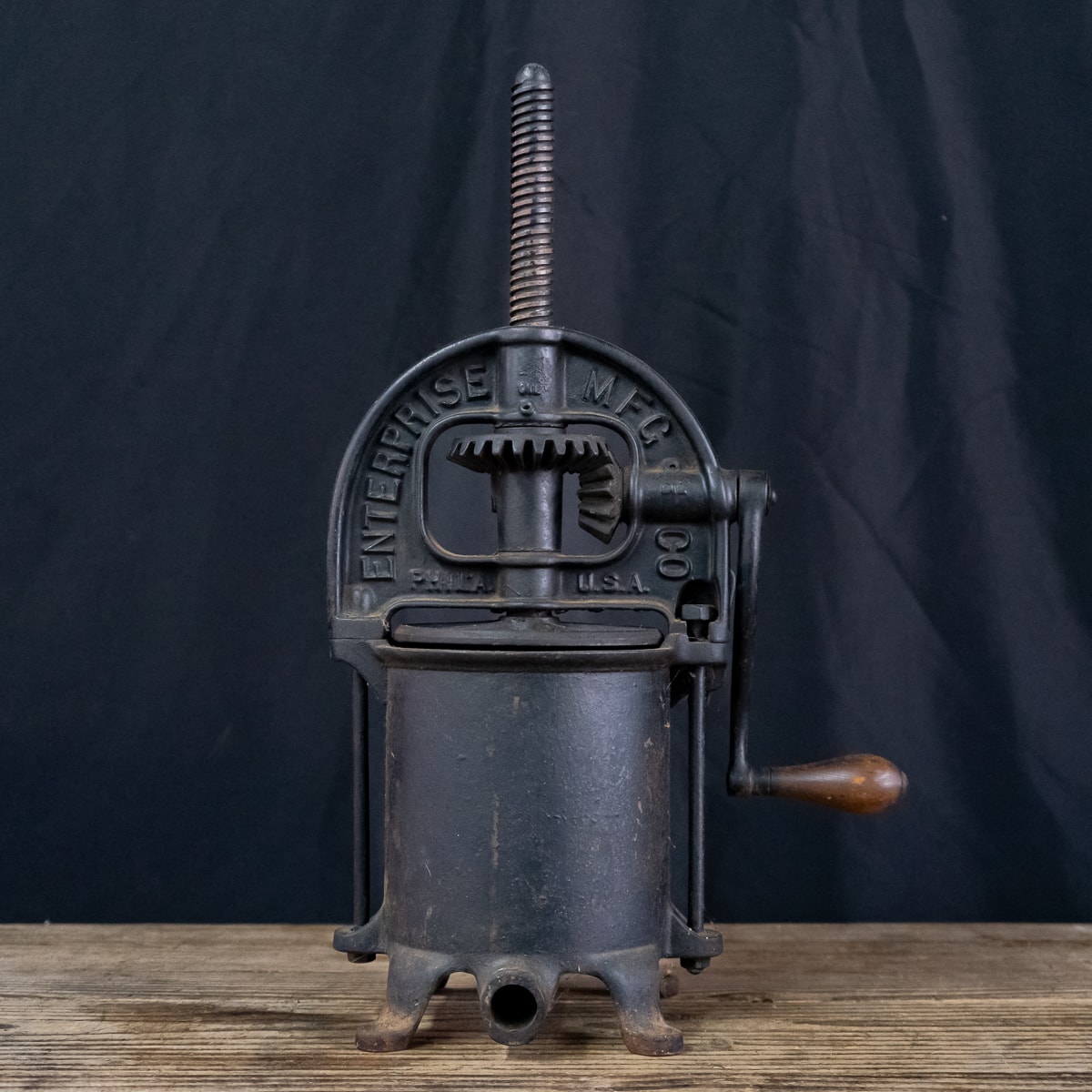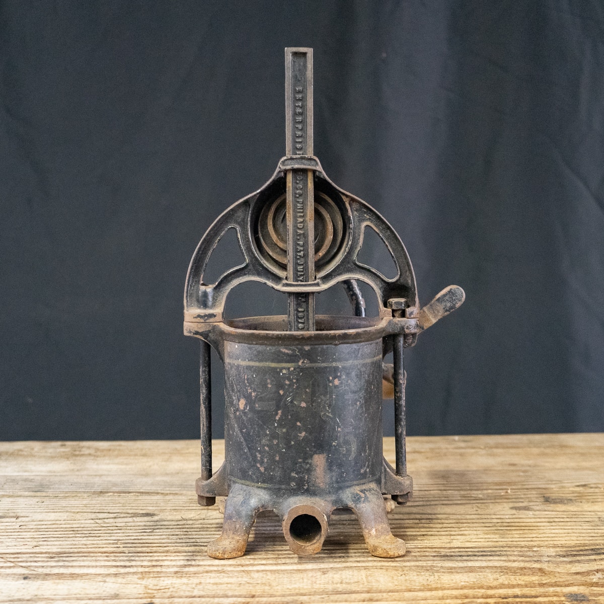 Antique Enterprise Cast Iron Lard Press, Antique 1875 Crown Cast Iron Brass Fluting Iron, Antique Enterprise Cast Iron Lard Press, IH Louisville Cast Iron Cadet Soldier, Black Hawk Cast Iron Corn Sheller, Enterprise Cast Iron Lard Press, Antique Enterprise Cast Iron Lard Press, Griswold No. 6 Cast Iron Skillet, Griswold No 5 Cast Iron Skillet, 1875 Crown Cast Iron Brass Fluting Iron with Box, Restored Cast Iron Scale, Two Cast Iron Corn Stick Pans, Queen Miniature Cast Iron Cooking Stove, Troemner Cast Iron Bakery Scale, Ideal No. 2 Miniature Cast Iron Stove, Chicago Scale Co. Crowfoot Cast Iron Scale, Antique Cast Iron Beam and Other Scales, Two Antique Cast Iron Toy Stoves, Big Bang Cast Iron Cannon and Horse Drawn Carriage, “Corona” Cast Iron Hand-Crank Corn Mill, Miniature Cast Iron Coffee Grinder, Michelin Man Cast Iron Figure Toy