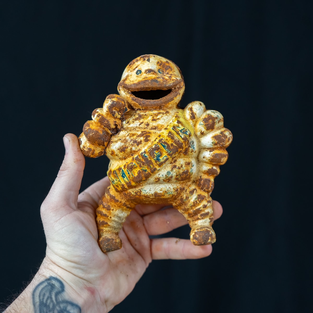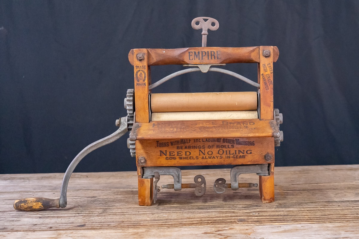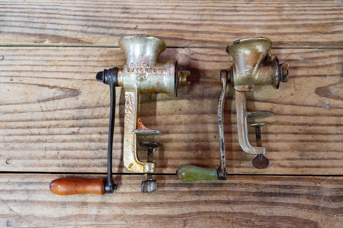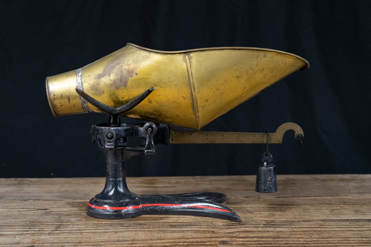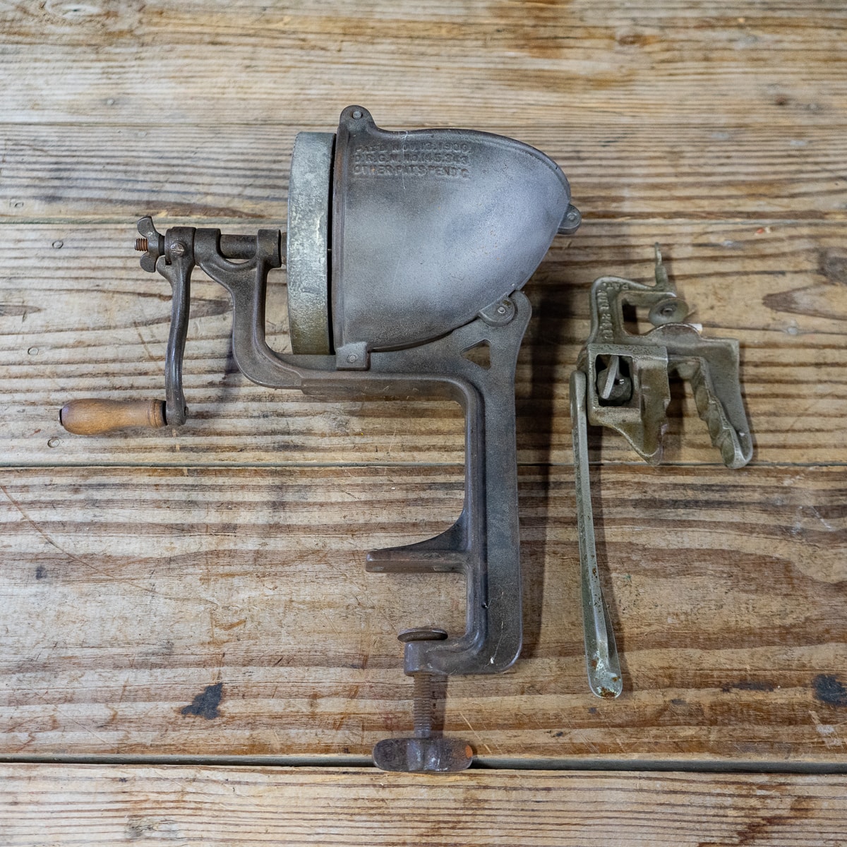 Antique Enterprise Cast Iron Lard Press, Antique 1875 Crown Cast Iron Brass Fluting Iron, Antique Enterprise Cast Iron Lard Press, IH Louisville Cast Iron Cadet Soldier, Black Hawk Cast Iron Corn Sheller, Enterprise Cast Iron Lard Press, Antique Enterprise Cast Iron Lard Press, Griswold No. 6 Cast Iron Skillet, Griswold No 5 Cast Iron Skillet, 1875 Crown Cast Iron Brass Fluting Iron with Box, Restored Cast Iron Scale, Two Cast Iron Corn Stick Pans, Queen Miniature Cast Iron Cooking Stove, Troemner Cast Iron Bakery Scale, Ideal No. 2 Miniature Cast Iron Stove, Chicago Scale Co. Crowfoot Cast Iron Scale, Antique Cast Iron Beam and Other Scales, Two Antique Cast Iron Toy Stoves, Big Bang Cast Iron Cannon and Horse Drawn Carriage, “Corona” Cast Iron Hand-Crank Corn Mill, Miniature Cast Iron Coffee Grinder, Michelin Man Cast Iron Figure Toy