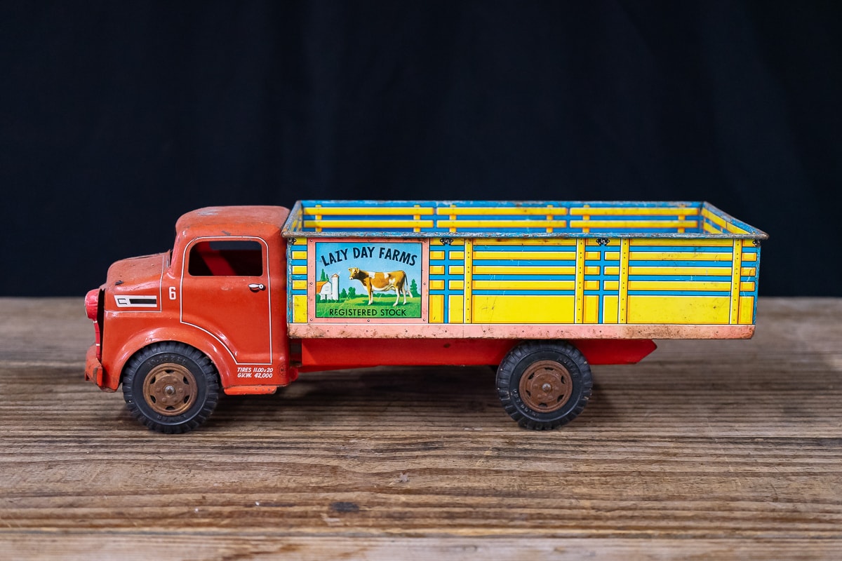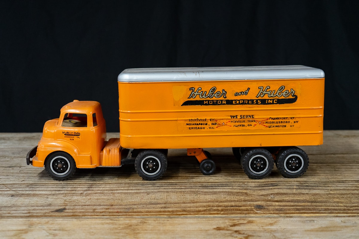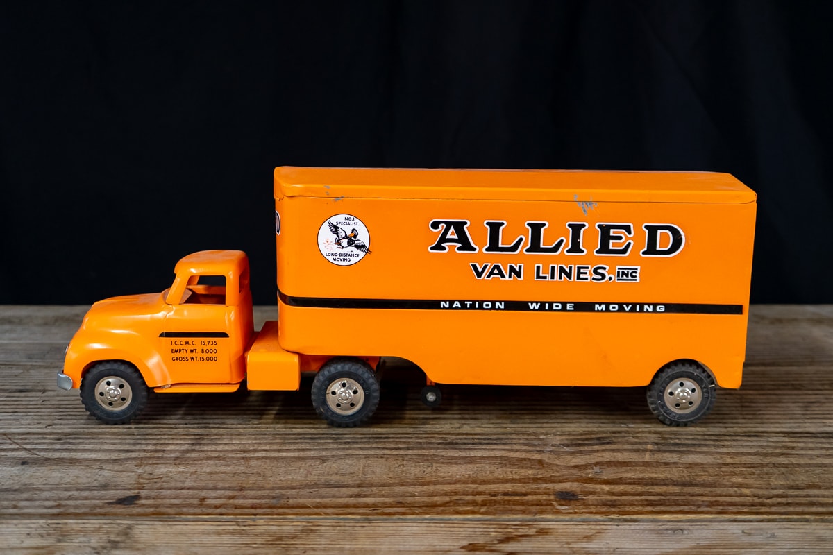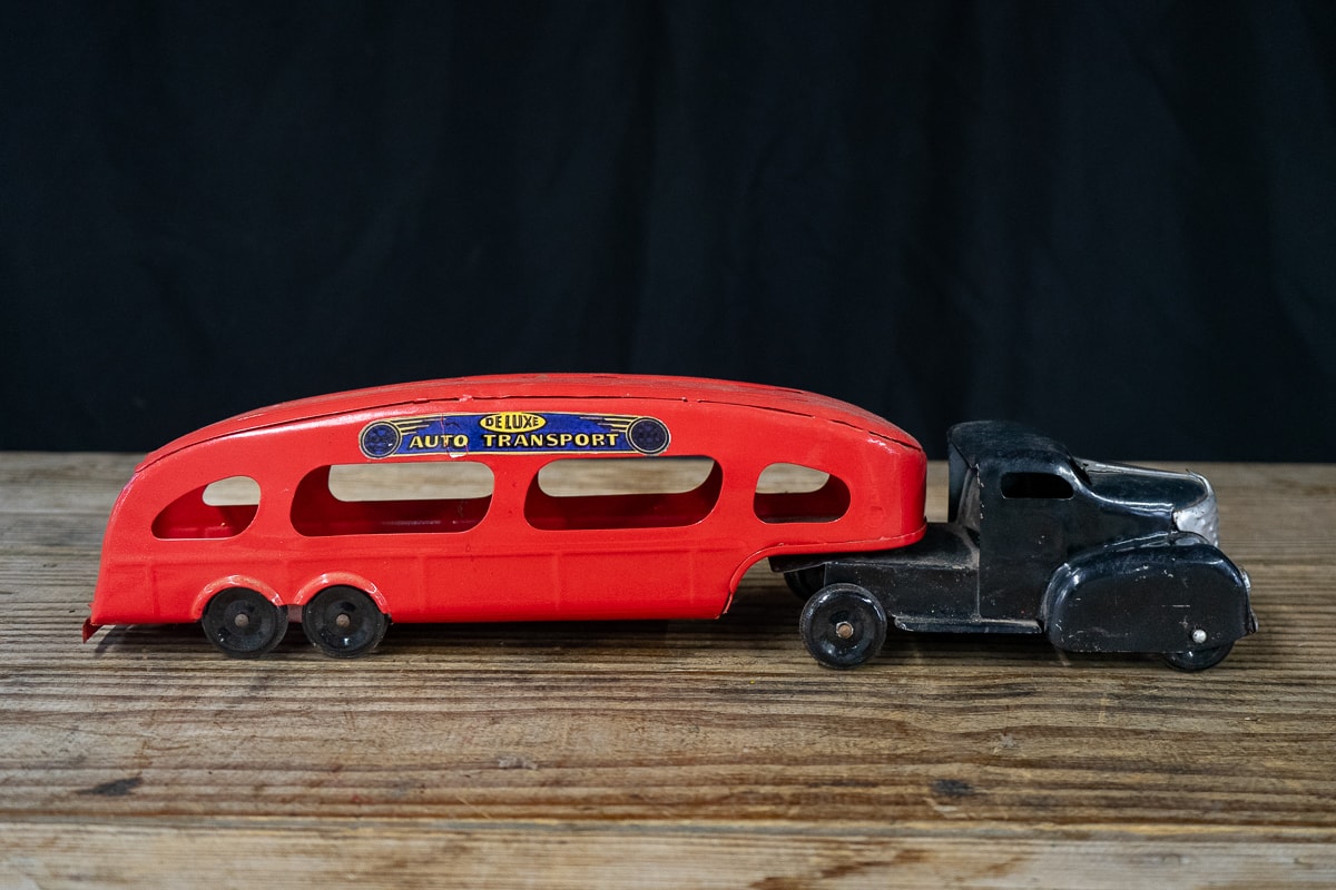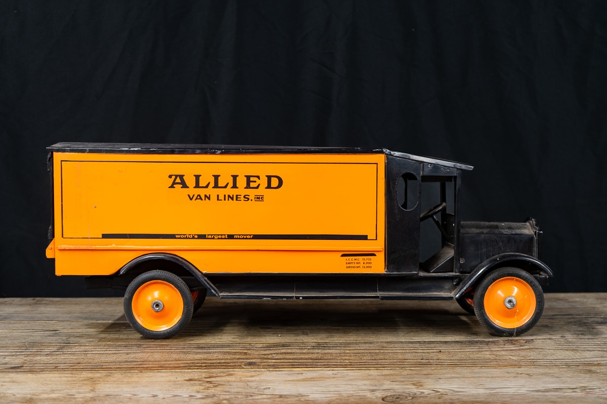 Large Buddy L Outdoor Railroad Train Set, 1920s Keystone Custom Allied Van Lines Moving Truck, Marx Speed King Tin Windup Race Car, Tri-Ang Transport Van No. 200 Invader, Hubley Die-Cast Diesel Road Toy Grader, 1940s Smitty-Toys Smith-Miller GMC Silver Streak Semi Truck and Tractor Trailer, 1930s Keystone Ride Em Steam Roller-60 Ride On Toy, Kingsbury Belknap Bluegrass Hardware Truck, 1950s Structo Toys Allied Van Lines Moving Van, 1950s Huber and Huber Wyandotte Van Lines Semi Truck and Trailer, Marx Deluxe Auto Transport Semi Truck & Trailer, Wyandotte Toy-Town Delivery Wagon, Caravan Automotive Transport Semi Truck & Trailer, J. Chein & Co. Roller Coaster Tin Litho Toy, Wyandotte Pepsi-Cola Delivery Semi Truck & Trailer, 1950s Hubley Kiddie #480 Diesel Road Roller, 1955 Tonka Toys Allied Movers Semi Truck and Trailer, Turner Toys Firestone Tire Service, Wyandotte Army Truck and Trailer, 24″ Big Bang Cannon, Oglesby Toy Jeep – Peru, IN, 1920s Hand Crank Dump Truck, 1950s Structo Toys Equipment Hauler with Steam Shovel, Two Ertl Toy Tractors, Buddy “L” Curtiss Baby Ruth Semi Truck and Trailer, Kingsbury Toys 1936 Ford Coupe, 1930s Lindstrom’s “Gold Star” Tabletop Pinball Game, Tri-Ang Hi-Way Milk Truck, Ideal Toys AAA Fix-It Tow Truck, J. Chein Wind Up Alligator Toy, 1954-1955 Buddy “L” Repair It Service Truck, Master Metals Toy Dump Truck, Wyandotte Express Semi Truck and Trailer, 1960s Toy Tiger Tractor with Original Box, Remote Control Tank Toy with Original Box, Smoking Texan Jr. Cap Pistol by Hubley with Original Box, 1954-55 Buddy “L” Heavy Machinery Service Truck, Wyandotte Official Service Car Wrecker Truck, Auburn Rubber Police Motorcycle Toy, 1950s Doepke Model Toys Rossmoyne Pumper Fire Truck, Antique Auto-Wheel Coaster Company Scooter, Antique Auto-Wheel Coaster Company Scooter with Seat, Modern Radio Flyer Wagon, Restored Metal Baby Walker Stroller, Structo Toys Cement Mixer Truck, Yale University Happy Dan The Bulldog Rubber Mascot Figure, 1930s Kingsbury Toys Chrysler Airflow Sedan, Battery Operated U.S. Navy Armored Toy Car, 1960s Structo Hydraulic Dump Truck, Marx Magnetic Crane Truck, 1950s Structo Toys Windup Tanker, Coca-Cola Delivery Semi Truck & Trailer, Wyandotte Red Cab and Stake-Bed Trailer, Panama Pile Driver and Bowler Andy Mill Toys, Four Bass Fishing Belt Buckles, Buddy “L” Long-Nose Wrecker Tow Truck, 1920s Schieble Toy Ladder Fire Truck, Restored Tri-Ang Dump Truck, Tri-Ang Transport Dump Truck, J. Chein & Co. Roller Coaster Tin Litho Toy, J. Chein Toys Mack Wrecker Truck, Collection of Miniature Military Toys, 1960s Structo Dump Truck, 1950s Structo Red & Yellow Dump Truck, Mattel Hot Wheels USA Builder Set 2, Wyandotte Truck Lines Truck and Trailer, 1950s Doepke Model Toys Fire Truck, 1953 Hubley Kiddie Toy No. 509 Corvette, 1940s Buddy “L” Wrecker Truck, Marx Tin Litho Lazy Day Farms Stake Truck, Buddy “L” Dump Truck, 1950s Wyandotte Good Year Delivery Truck, 1950’s Toy Firearms, Tonka, Nylint & Electromobile Toy Cars, 1957 Tonka No. 5 Fire Truck with Fire Hydrant, Distler US Zone German Wind-Up Mercedes Toy Car, Tonka, Ertl and Nylint Toy Cars, Doepke Model Toys MG-TD Sports Car, Marx Casey Jr. Disneyland Express and Marx Friction Old Jalopy, Vintage Toy Collection, Two Mr. Machine Toys, Two Toy Car Carrying Cases and Cars, 1950s Eska Toy John Deere Manure Spreader, Distler Electro Magic 7500 Toy Car & Box, Studers #3 Fiction Hot Rod, Nylint Wind-Up Lift Truck and Deering Trailer., Turner Toys Mack Aerial Ladder Truck, Fisher-Price Circus Toy Wagon Set, Three Vintage Toy Cars, Puzzles and Game Collection, Hot Wheels Oscar Mayer Wienermobile, 1950’s Line Mar Military Toy Jeep, NAPA Semi And State Farm Nylint Toy Trucks, Gerber and Pillsbury Nylint Toy Semi-Trucks, Six Matchbox “Model Of Yesteryear” Die-Cast Vehicles, Nine Lledo Chevron Commemorative Die-Cast Vehicles, Sixteen Various Die-Cast Vehicles., 1950’s Marx Wind-Up Train Set, American Flyer S-Gauge Electric Train Set, Louis Marx & Co. Stream Line Steam Type Train Set w/ Box, Schuco Varianto Racetrack Set, Structo Hook & Ladder Fire Truck, Hot Wheels Super TurboTrax, Two 1950’s Erector Sets, German Child’s Building Block Game, Lionel Construction Kit and Wood Labyrinth Game, Pluto Dog Bobblehead, Bruce Fox Leaf Dish, Starr Bottle Opener and More, Collection of Vintage Action Figures and Toys, Buddy L Texaco Toy Truck, Corgi Toys Batmobile and Batboat., Marx “Old Jalopy” and “Mr. Houndog” Wind-Up Tin Cars, Marx Wind-Up “Turnover Tank”, Marx “Dick Tracy Squad Car”, Marx Wind-up “Sparkling Doughboy Tank”, Marx “Fire Chief” Tin Litho Car, Unique Art Mfg “Kiddy Cyclist” Toy, Hubley Die-cast Diesel Road Roller Toy, Wind-up Tin Litho Musical Church Organ, Five Marx Tin Litho Buildings, Tin Wind-Up Alligator and Ladybug Toys, Central Petroleum Company Salesman’s Sample Kit, Marx “Jumpin’ Jeep” Tin Toy, 1930’s Wyandotte Dump Truck, Marx Train Accessories & Ringling Bros. Billboard, Marx “Grade Crossing Signal Man” Tin Building, Marx O Gauge Train Collection, Cor-Cor Toy Train Set, Eight Hot Wheels Billionth Car Collection, Ninety Five Mystery Hot Wheels Cars in Original Packages, Sixty One Hot Wheels & Chevron Miniature Cars in Original Packages, Miniature Die Cast Toys, Kenner’s Light Beam Car & Catalogs, Collection of Diecast NASCAR Cars, Royal Cast Iron Toy Cookstove, Lehman Rigido Toy Sky Lift