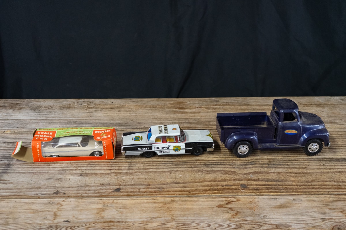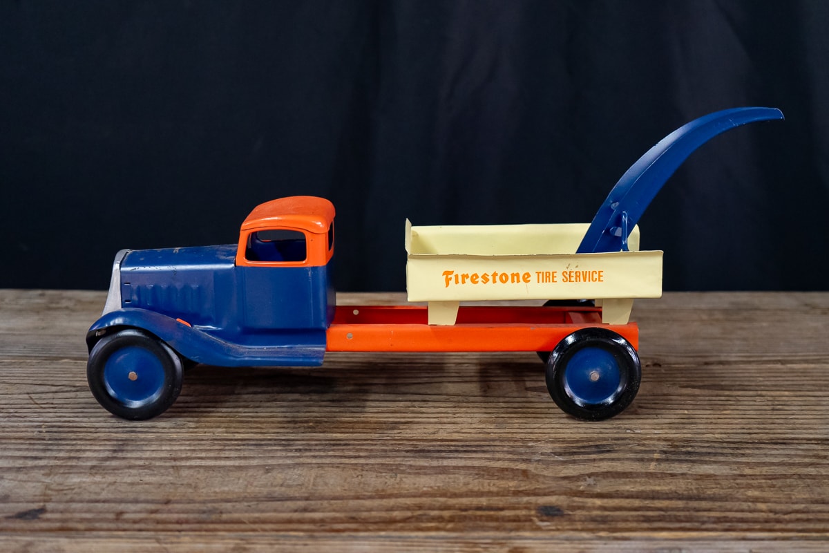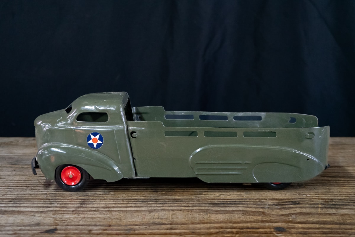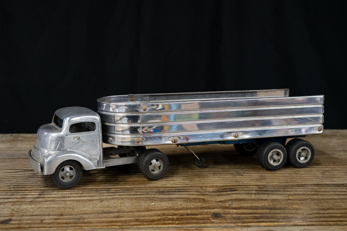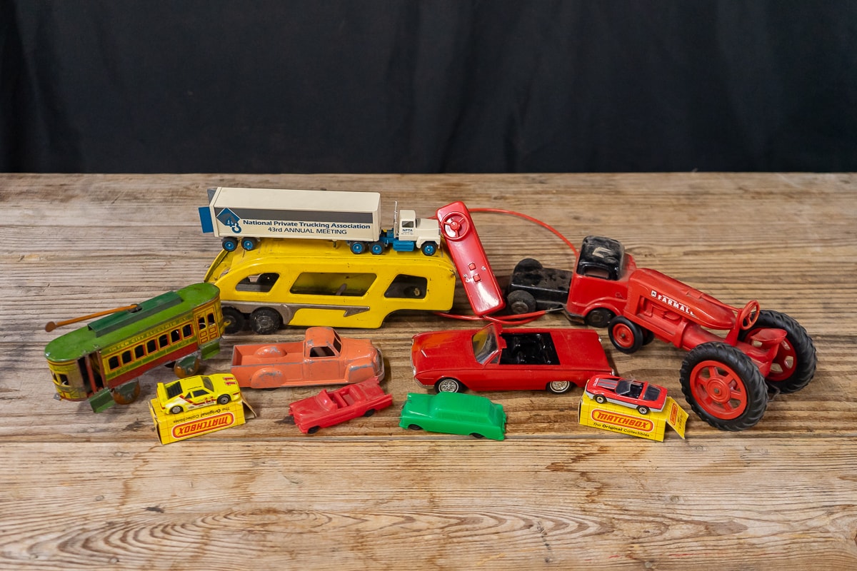 Large Buddy L Outdoor Railroad Train Set, 1920s Keystone Custom Allied Van Lines Moving Truck, Marx Speed King Tin Windup Race Car, Tri-Ang Transport Van No. 200 Invader, Hubley Die-Cast Diesel Road Toy Grader, 1940s Smitty-Toys Smith-Miller GMC Silver Streak Semi Truck and Tractor Trailer, 1930s Keystone Ride Em Steam Roller-60 Ride On Toy, Kingsbury Belknap Bluegrass Hardware Truck, 1950s Structo Toys Allied Van Lines Moving Van, 1950s Huber and Huber Wyandotte Van Lines Semi Truck and Trailer, Marx Deluxe Auto Transport Semi Truck & Trailer, Wyandotte Toy-Town Delivery Wagon, Caravan Automotive Transport Semi Truck & Trailer, J. Chein & Co. Roller Coaster Tin Litho Toy, Wyandotte Pepsi-Cola Delivery Semi Truck & Trailer, 1950s Hubley Kiddie #480 Diesel Road Roller, 1955 Tonka Toys Allied Movers Semi Truck and Trailer, Turner Toys Firestone Tire Service, Wyandotte Army Truck and Trailer, 24″ Big Bang Cannon, Oglesby Toy Jeep – Peru, IN, 1920s Hand Crank Dump Truck, 1950s Structo Toys Equipment Hauler with Steam Shovel, Two Ertl Toy Tractors, Buddy “L” Curtiss Baby Ruth Semi Truck and Trailer, Kingsbury Toys 1936 Ford Coupe, 1930s Lindstrom’s “Gold Star” Tabletop Pinball Game, Tri-Ang Hi-Way Milk Truck, Ideal Toys AAA Fix-It Tow Truck, J. Chein Wind Up Alligator Toy, 1954-1955 Buddy “L” Repair It Service Truck, Master Metals Toy Dump Truck, Wyandotte Express Semi Truck and Trailer, 1960s Toy Tiger Tractor with Original Box, Remote Control Tank Toy with Original Box, Smoking Texan Jr. Cap Pistol by Hubley with Original Box, 1954-55 Buddy “L” Heavy Machinery Service Truck, Wyandotte Official Service Car Wrecker Truck, Auburn Rubber Police Motorcycle Toy, 1950s Doepke Model Toys Rossmoyne Pumper Fire Truck, Antique Auto-Wheel Coaster Company Scooter, Antique Auto-Wheel Coaster Company Scooter with Seat, Modern Radio Flyer Wagon, Restored Metal Baby Walker Stroller, Structo Toys Cement Mixer Truck, Yale University Happy Dan The Bulldog Rubber Mascot Figure, 1930s Kingsbury Toys Chrysler Airflow Sedan, Battery Operated U.S. Navy Armored Toy Car, 1960s Structo Hydraulic Dump Truck, Marx Magnetic Crane Truck, 1950s Structo Toys Windup Tanker, Coca-Cola Delivery Semi Truck & Trailer, Wyandotte Red Cab and Stake-Bed Trailer, Panama Pile Driver and Bowler Andy Mill Toys, Four Bass Fishing Belt Buckles, Buddy “L” Long-Nose Wrecker Tow Truck, 1920s Schieble Toy Ladder Fire Truck, Restored Tri-Ang Dump Truck, Tri-Ang Transport Dump Truck, J. Chein & Co. Roller Coaster Tin Litho Toy, J. Chein Toys Mack Wrecker Truck, Collection of Miniature Military Toys, 1960s Structo Dump Truck, 1950s Structo Red & Yellow Dump Truck, Mattel Hot Wheels USA Builder Set 2, Wyandotte Truck Lines Truck and Trailer, 1950s Doepke Model Toys Fire Truck, 1953 Hubley Kiddie Toy No. 509 Corvette, 1940s Buddy “L” Wrecker Truck, Marx Tin Litho Lazy Day Farms Stake Truck, Buddy “L” Dump Truck, 1950s Wyandotte Good Year Delivery Truck, 1950’s Toy Firearms, Tonka, Nylint & Electromobile Toy Cars, 1957 Tonka No. 5 Fire Truck with Fire Hydrant, Distler US Zone German Wind-Up Mercedes Toy Car, Tonka, Ertl and Nylint Toy Cars, Doepke Model Toys MG-TD Sports Car, Marx Casey Jr. Disneyland Express and Marx Friction Old Jalopy, Vintage Toy Collection, Two Mr. Machine Toys, Two Toy Car Carrying Cases and Cars, 1950s Eska Toy John Deere Manure Spreader, Distler Electro Magic 7500 Toy Car & Box, Studers #3 Fiction Hot Rod, Nylint Wind-Up Lift Truck and Deering Trailer., Turner Toys Mack Aerial Ladder Truck, Fisher-Price Circus Toy Wagon Set, Three Vintage Toy Cars, Puzzles and Game Collection, Hot Wheels Oscar Mayer Wienermobile, 1950’s Line Mar Military Toy Jeep, NAPA Semi And State Farm Nylint Toy Trucks, Gerber and Pillsbury Nylint Toy Semi-Trucks, Six Matchbox “Model Of Yesteryear” Die-Cast Vehicles, Nine Lledo Chevron Commemorative Die-Cast Vehicles, Sixteen Various Die-Cast Vehicles., 1950’s Marx Wind-Up Train Set, American Flyer S-Gauge Electric Train Set, Louis Marx & Co. Stream Line Steam Type Train Set w/ Box, Schuco Varianto Racetrack Set, Structo Hook & Ladder Fire Truck, Hot Wheels Super TurboTrax, Two 1950’s Erector Sets, German Child’s Building Block Game, Lionel Construction Kit and Wood Labyrinth Game, Pluto Dog Bobblehead, Bruce Fox Leaf Dish, Starr Bottle Opener and More, Collection of Vintage Action Figures and Toys, Buddy L Texaco Toy Truck, Corgi Toys Batmobile and Batboat., Marx “Old Jalopy” and “Mr. Houndog” Wind-Up Tin Cars, Marx Wind-Up “Turnover Tank”, Marx “Dick Tracy Squad Car”, Marx Wind-up “Sparkling Doughboy Tank”, Marx “Fire Chief” Tin Litho Car, Unique Art Mfg “Kiddy Cyclist” Toy, Hubley Die-cast Diesel Road Roller Toy, Wind-up Tin Litho Musical Church Organ, Five Marx Tin Litho Buildings, Tin Wind-Up Alligator and Ladybug Toys, Central Petroleum Company Salesman’s Sample Kit, Marx “Jumpin’ Jeep” Tin Toy, 1930’s Wyandotte Dump Truck, Marx Train Accessories & Ringling Bros. Billboard, Marx “Grade Crossing Signal Man” Tin Building, Marx O Gauge Train Collection, Cor-Cor Toy Train Set, Eight Hot Wheels Billionth Car Collection, Ninety Five Mystery Hot Wheels Cars in Original Packages, Sixty One Hot Wheels & Chevron Miniature Cars in Original Packages, Miniature Die Cast Toys, Kenner’s Light Beam Car & Catalogs, Collection of Diecast NASCAR Cars, Royal Cast Iron Toy Cookstove, Lehman Rigido Toy Sky Lift