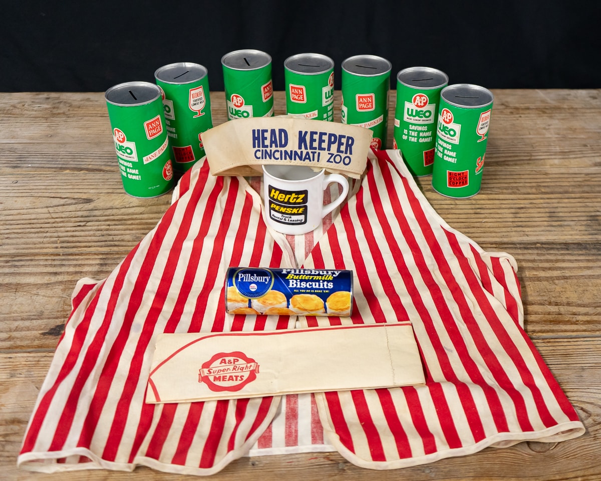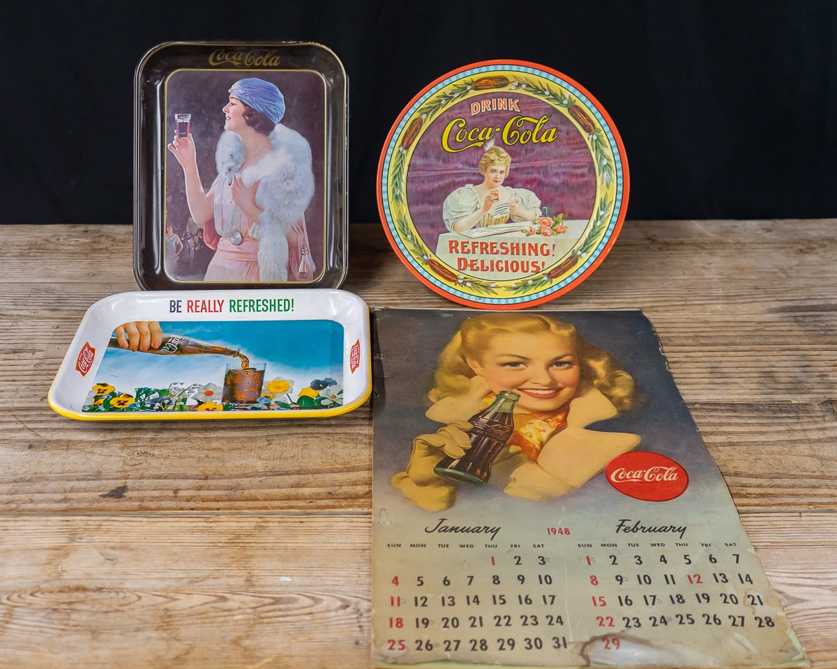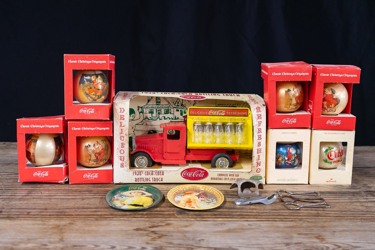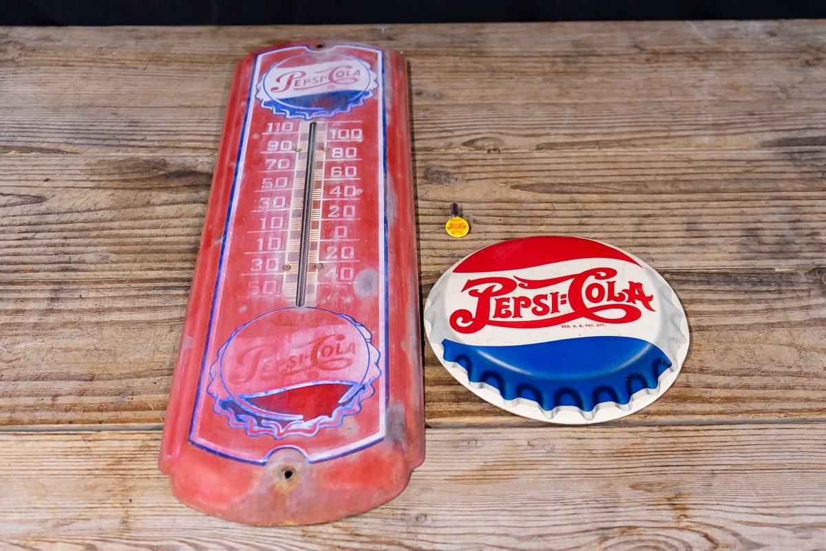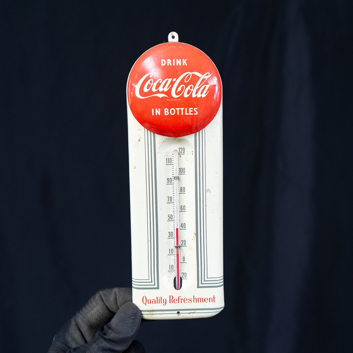 Pair of Coca-Cola Aluminum Bottle Caddies, Royal Crown Cola Embossed Tin Thermometer, Christmas 1923 Golden Coca-Cola Bottle Thermometer, Falls City Hi-Bru Beer Oval Metal Tray, Drink Cheer Up Advertisement Clock, Coca-Cola Embossed Bottle Robertson Thermometer, Two Hamm’s Beer Metal Advertisement Trays, D.H. Russell Pure Rye Louisville, KY Corkscrew, Folk Art 105MM M15 Shell – “Ammunition Sold Here”, Cast Metal Southern Comfort Mechanical Bank, Perry & Alvey Funeral Directors and Embalmers Elizabethtown, KY Thermometer, Auto-Strop Safety Razor Display Showcase, Large Sterling Pilsner Beer Bottle Bank, Rainbo Bread Tin Sign, Granger Pipe Tobacco Tin Can, 1925 Starr Coca-Cola Bottle Opener, 1920’s Pepsi Cola Bottle Opener, Texaco Outboard Motor Oil Can, Mobilube GX 90 Outboard Motor Oil Can, Drink Coca-Cola In Bottles Thermometer, Schulz Coal Co. New Albany Thermometer, Red Button Coca-Cola Thermometer, Sultana Peanut Butter 1 Pound Bucket, Antique Maytag Fuel Mixing Can, Stroh’s Beer 1920 Delivery Truck Store Advertisement, 1957 Pepsi-Cola Thermometer, Vintage Coca-Cola Collectibles, Griesedieck Brothers Beer Light-Up Advertisement, Four Tire Ashtrays, Collection of Bar Items, Four Tire Advertisement Ash Trays, Century of Progress 1934 FIrestone TIre Advertisement bAshtray, Two Uranium Vaseline Glass Tire Advertisement Ash Trays, Dawson’s Whisky Crate, Collection of Beer Cans and Openers, Two Advertisement Thermometers, Coca-Cola Advertisement and Collectibles, Reproduction Pepsi-Cola Advertisements, Taylor & Airguide Thermometers, Collection of Bar Advertisement Bottles, Bar Decor & Items, Wooden Pepsi-Cola and Coca-Cola Crates, Reproduction Anheuser-Busch Crate and Playing Cards, Two Pluto Concentrated and Fortified Spring Water Bottles, Four Wennings Country Pride Cardboard Cards Coasters, Advertisement and Vanity Item Collection, AutoLite Co. Advertising Knife Sharpener, Winchester Wooden Ammo Crate, Martin’s Scotch Whiskey Wooden Crate, Sterling Light Dream Team Sign, Budweiser Dale Earnhardt JR Mirror, Kiwi Boot Polish Rotating Display, J&P Coats Countertop Thread Display Case, Boye Needle Co. Sewing Machine Needle Display And Reference, Sinclair Gasoline Pump Sign and Havoline Oil Can, A & P Grocery Memorabilia & More, Pin Up Girl Advertisement Calendars, Coca Cola Advertisement Trays & Calendar, Budweiser Rolling Stones 1989 Steel Wheels Tour Posters, Cardboard Coca-Cola Christmas Store Displays, Three NASCAR Cardboard Store Displays