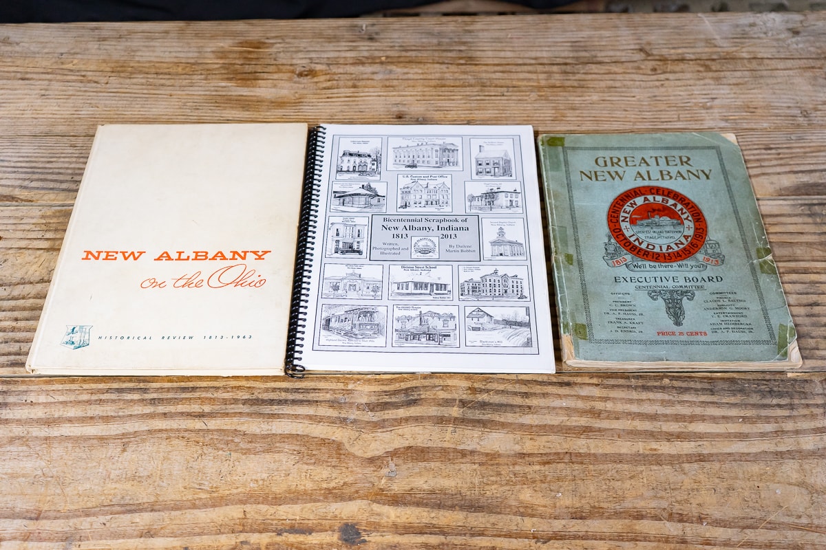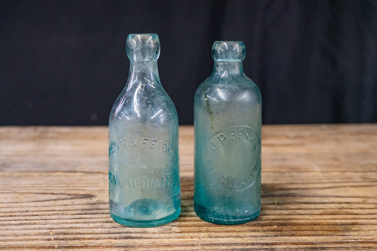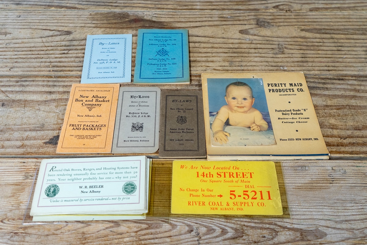 Two Antique J.R. Renn New Albany Blue Glass Bottles, Early F. & P. Bochart, New Albany. IND Glass Bottle, Oertel Brew Cream Beer / Frank Bocard & Co. New Albany, IND Bottle Opener, Walts Riddle & Roach Real Estate Thermometer – New Albany, Indiana, Klare’s Cafe Fine Wines, Liquors & Cigars Match Safe – New Albany, IND, 1920s-1930s New Albany High School Senior Blotter Yearbooks, Charles Hegewald Foundry Eagle Finial Top, Anchor Range & Stove Collectibles, Two New Albany Coin Banks, Two Goodyear New Albany Tire Ashtrays, Local Coin Banks, Two Local Coin Banks, Rocket Bank from American Bank, New Albany, IN, Local Business Advertisement Collectibles, New Albany High School Cream and Sugar Sets, New Albany Indiana Collectibles, Collection of New Albany Books, Rocket Bank from American Bank, New Albany, IN, Belknap Hardware Tire Gauge and More, City Bottling Works & Bochart New Albany Glass Bottles, New Albany Empheria & Memorabilia, New Albany Plumbing Supply Co. Playboy Calendars