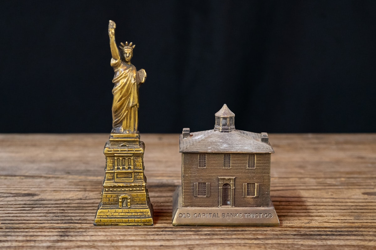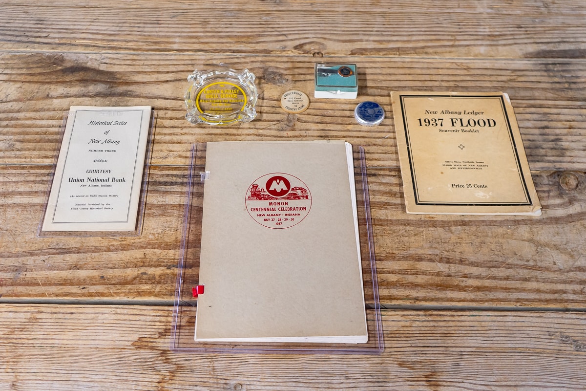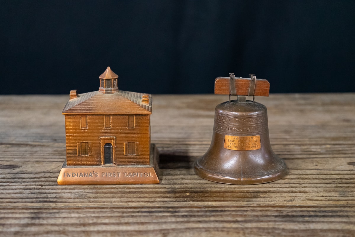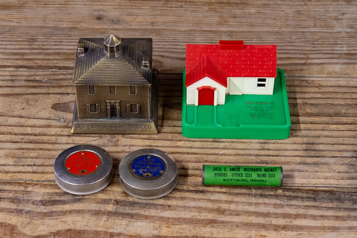 Two Antique J.R. Renn New Albany Blue Glass Bottles, Early F. & P. Bochart, New Albany. IND Glass Bottle, Oertel Brew Cream Beer / Frank Bocard & Co. New Albany, IND Bottle Opener, Walts Riddle & Roach Real Estate Thermometer – New Albany, Indiana, Klare’s Cafe Fine Wines, Liquors & Cigars Match Safe – New Albany, IND, 1920s-1930s New Albany High School Senior Blotter Yearbooks, Charles Hegewald Foundry Eagle Finial Top, Anchor Range & Stove Collectibles, Two New Albany Coin Banks, Two Goodyear New Albany Tire Ashtrays, Local Coin Banks, Two Local Coin Banks, Rocket Bank from American Bank, New Albany, IN, Local Business Advertisement Collectibles, New Albany High School Cream and Sugar Sets, New Albany Indiana Collectibles, Collection of New Albany Books, Rocket Bank from American Bank, New Albany, IN, Belknap Hardware Tire Gauge and More, City Bottling Works & Bochart New Albany Glass Bottles, New Albany Empheria & Memorabilia, New Albany Plumbing Supply Co. Playboy Calendars