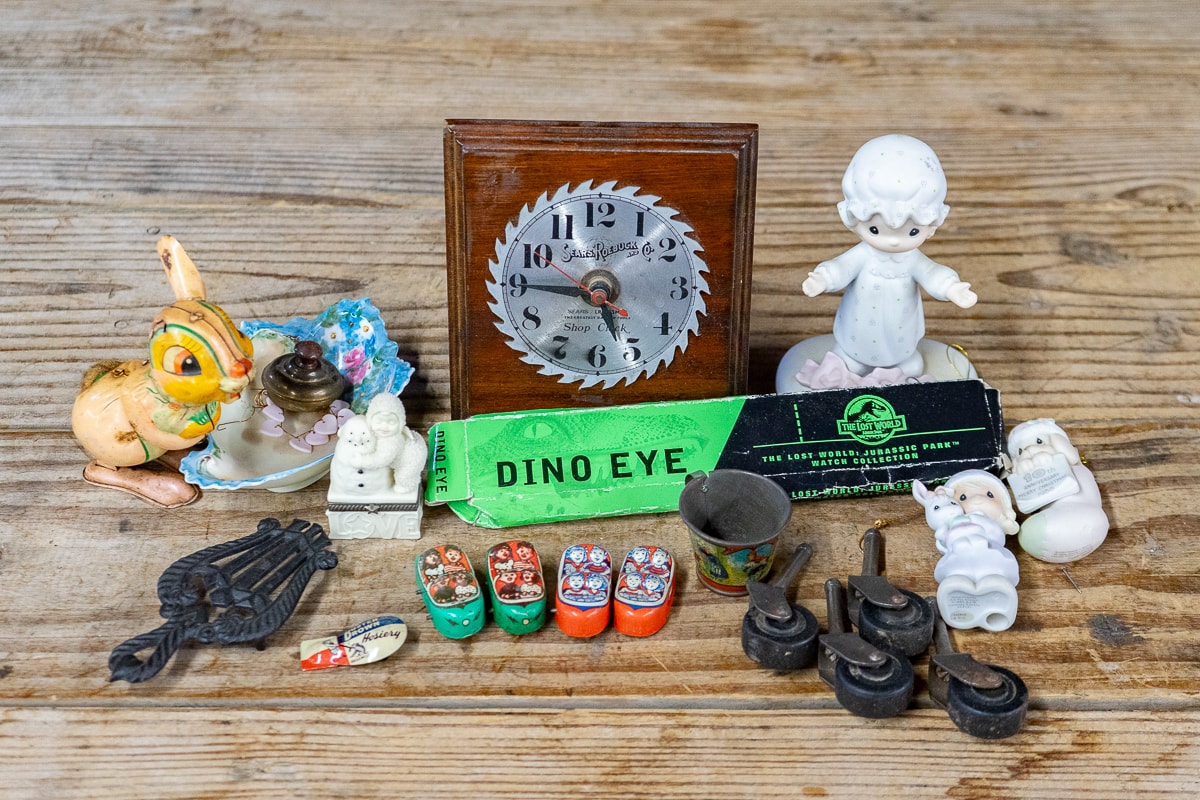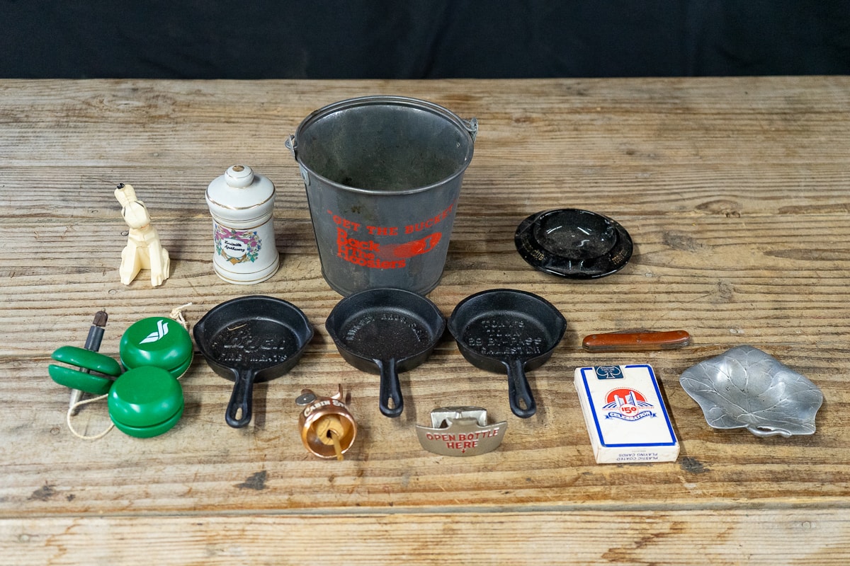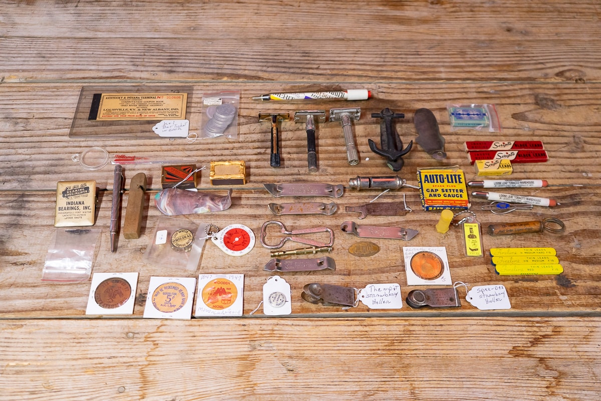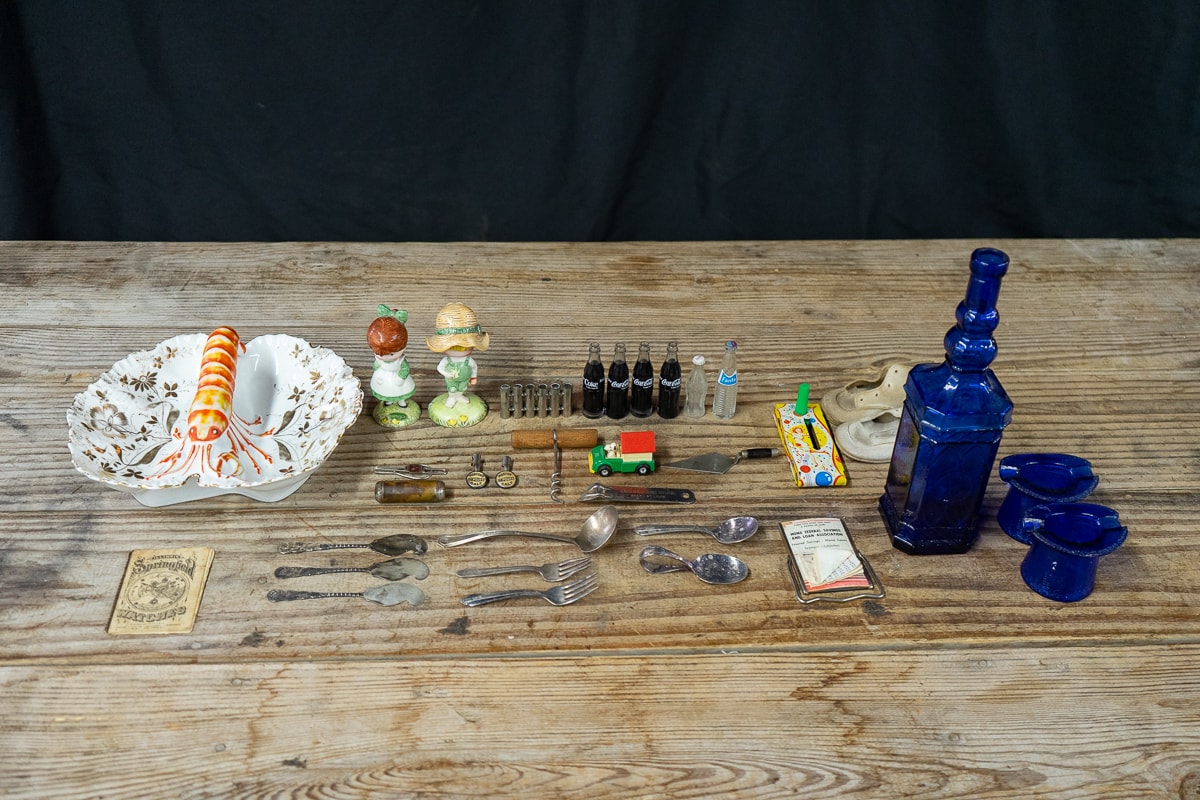 Sinclair Quart Antifreeze Can, Antique Copper Double Boiler Pot, Electrified Dressel Switch Signal Lamp, Cast Aluminum Bruce Fox Leaf Dish, Antique Wooden Beer Kegerator, Antique Montgomery Ward Cream Separator, Antique Fairbanks Crowfoot Cast-Iron Scale, Two Galvanized Oil Cans, Standard Oil Stamp Carousel Holder, Antique Oak Wall Phone, Two Vintage Boat Lights, Griswold No. 273 Corn Cake Pan with Original Label, Antique Burke & James Box Camera with Tripod, Antique German-Made Habel Flare Gun, Antique Cast Metal Elephant Cigarette Dispenser, 1925 A.B.T Pellet Gun, Antique Paull’s No.0 Barn Lantern, 1919 Deagan Xylophone Railroad Diner Car Chime, Centenary of the Battle of Tippecanoe Ribbon – November 7, 1811-1911, “Luchs” Messbecher German Measuring Cup, 1912 Copy of Story of the Wreck of the Titanic, Wigwam Village No. 1 Postcard – Stamped 1938, Two Toyo Company Piano Cigarette Holders/Lighters, Early 1900s Computing Cheese Wheel Cutter, Universal Vegetable Slicer and Home Nutcracker, Two Antique Lineman Crimping Tools, Landers, Frary & Clark Climax Bread Maker, Master Model 4 Stenotype with Case – From Lasalle Extension University, 1950’s Metal Baby Walker/Stroller, Vintage Wooden Sled, Spencer 5-String Banjo and Stand, Tri-Fold Room Woven Wood Divider, Hammered Steel Hip Flask, K & I Railroad Adams & Westlake Co. Lantern, Enterprise Cherry Stoner, Antique Eyeglasses and Case, Toledo Cooker Co. Conservo Steamer Canner, Reading Hardware Co. Apple Peeler, Pennsylvania Lines Railroad Lantern, Antique Radioptican Projector, Brass Yale Padlocks, Antique Apple Peeler and Eagle Engineering Hand Crank Slicer, Collection of Antique Locks and Keys, Collection of Antique Locks and Keys, Antique Dovetailed Humidor Cigar Cabinet, Antique Dietz N.Y.C.S. Railroad Lantern, Cast Metal Hummingbird Decor, Souvenir Miniature Louisville Slugger Baseball Bats, Androck Egg Beater, Two Vintage Food Grinders, Old Grand-Dad Bourbon One Gallon Bottle with Tilt Stand, Antique Railroad Lantern, Dellinger Dairy Farm Milk Bottle – Jeffersonville, Indiana, Griswold No. 268 Crispy Corn/Wheat Stick Pan, Collection of Coca-Cola Toys and Memorabilia, Arctic Boy Galvanized Water Dispenser, Ronson 14K Gold Filled Pencil Lighter, Springwater Cookie Company Store Jar, Coca-Cola Memorabilia, Assorted Collectibles and Bar Decor, 1893 World’s Columbian Exposition Tickets and Advertisement Key Fob, The Dalvey Pocket Flask, Country Kitchen Antiques, World’s Fair Collectibles, Roseville Art Pottery Pine Cone & Lily Vases, McCoy Cookie Bank Jar, Assorted Antiques & Collectibles, 1960s Painted Glass Jack-O-Lantern and Skull Lanterns, Toy Semi Trucks and Trailers, Two Wood Storage Crates, Porcelain Hobart Dayton Model 970 Electric Scale, Antique Stereoscope and Native American Cards, Folk Art Hand-Made Insulator Coat & Hat Rack, Antique Stereoscope and WW1 Cards, Pocket Knives, Pipes and Lighters, Glass Bottle Collection, Antique Stereoscope and Cards, American Billiard Balls Set, Antique Grinders and Apple Peeler, Antique US-Ordnance Tire Pump, 1933 Chicago World’s Fair Baby Cradle and Tie Clip, Antique Segment Hand Operated Corn Planter, Ford & Sessions Clocks, Empire No. 350 Clothes Wringer, Antique Chicago-Telephone Company Oak Wall Phone, Petite Steamer Trunk, Ten Gallon Wayne Visible Gas Pump Glass Cylinder, Antique Edison S626 Cylinder Phonograph And Horn, Antique Magic Lantern Projector With Slides, Two Jim Beam Horse Decanters, Mr. Peanut Bank and Two Transistor Radios, Antique Pinking Machine and Miniature Meat Grinders, Three 1800’s Kerosene Dark Room Lamps, Collection of Advertisement Beer Steins, Doily Stretcher and Wooden Clothes Drying Rack, Collection of Milk Bottles, Salt and Pepper Shakers, Bella Casa Ceramic Vases, Franciscan Apple Dinnerware, Assorted Architectural Door Salvage & Railroad Keys, Four Wood Duck Decoys, Glass Insulator Coat Rack, Electrified Fenton Parlor Lamp, Wooden Cantilever Sewing Box, Instant Collection of Glass Insulators, Shotgun Shell Crimper, Sad Irons, Extinguisher & Medicine Bottles, Four Glass Alcohol Spirit Lamps, Heisey Puritan Glass Celery Vase, Pear and Grape Plates By M.A. Hadley, Three Glass Cake Stands, Two Glass Pedestal Cake Stands, Assorted Glass Miniatures, Milk Glass Cake Stands,Vase & Smoke Bell, Collection of Vintage Clear Glass, Blue Depression Glass Bowl and Plate, Antique Powder Measures, Inkwell and Brass Scale, Collection of Assorted Small Antiques and Collectibles, Mechanical Cat Toy In Box, Medicine and Apothecary Bottle Collection, Collection of Ball Mason Jars, Collection of 1940’s & 1950’s Glass Soda Bottles, Three Early Glass Beer Bottles, Silverplate Spoons and More, Frost Cutlery Pocket Knives in Original Boxes, Hafner & AJAX Locomotive Toys, Kilgore Firecracker Mortars, Coin Collector, Sealtest Dairy Box and More, Love Tokens and Monogrammed Pendant, Four Watch Chains With Charms, Civil Defence Radiation Detection Set, Countertop Rotating Display Showcase, Three Outdoor Enthusiasts Catalogs., US War Bonds Book, Framed Military Posters and Medals, U.S. First Day Covers From Postal Commemorative Society, Sprayers & Milk Cans, Milk Glass Light Fixture Globe, 1920’s German Mark Paper Currency, Toby Face Mugs & Creamers, Three Ceramic Insulators, Toy Dirigible, Green Glass Rabbit, Vase & Paper Weight, NASCAR Diecast Cars, Collector Cards & Coca Cola Display, Klopp Model DE Coin Counter, Wood Washboards, Shoe Stretcher & Sewing Basket, Lowrance Fish Lo-K Tor, Character Toys, Edison Phonograph Cylinder Rolls, Coffee Mill Hoppers, Bird Glass Nightclub Cigarette Holders & Matchbox Construction Set, Miniature Toys & Figurines, Montague & Heddon Fishing Rods, Three Camp Stoves, Motorcycle Collectors Pocket Knife & Case, Cast Iron Folding Bird Cage Stand, Vintage Fishing Supplies, Coca-Cola 50th Anniversary Bottle Opener