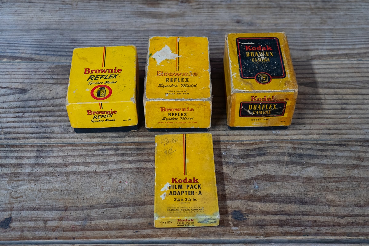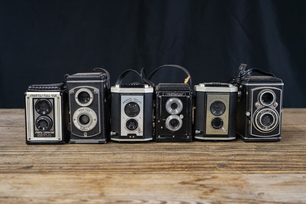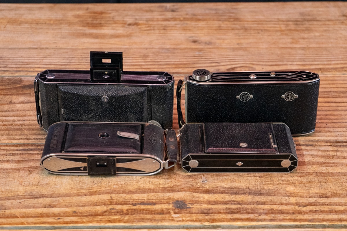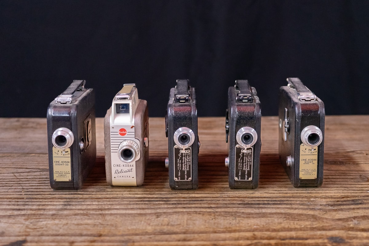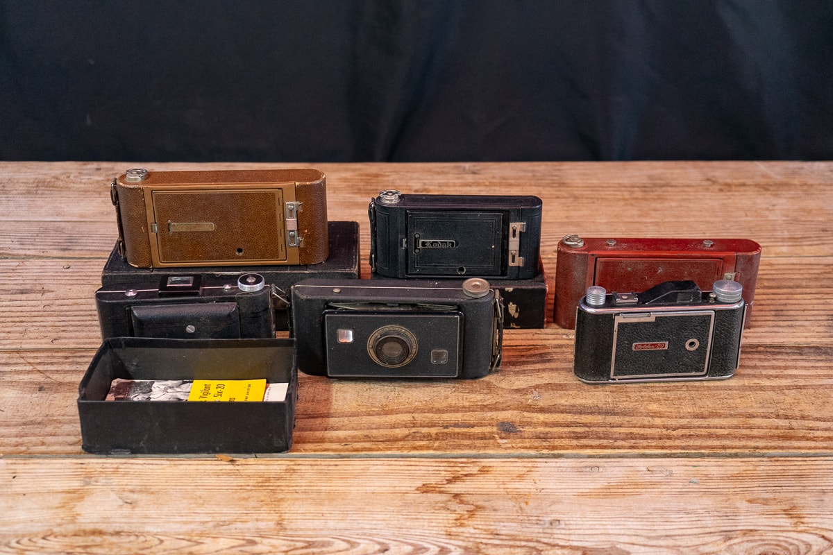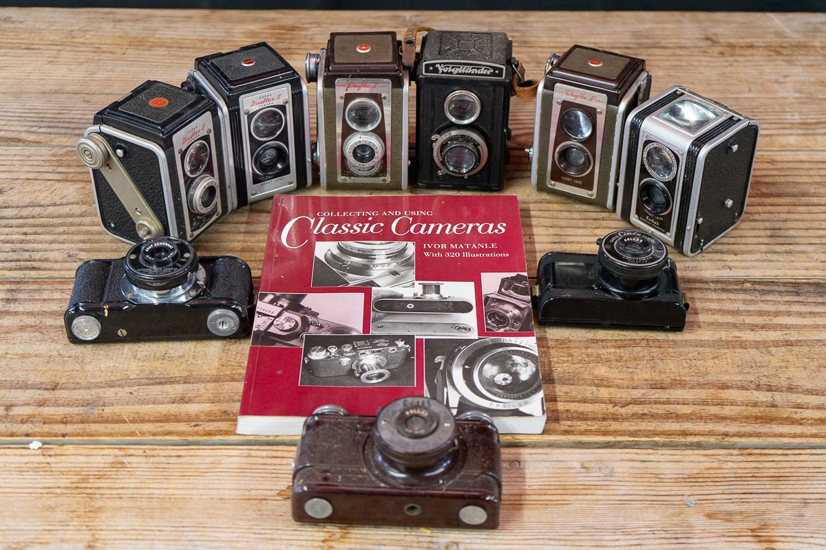 Two Revere Super Eight Movie Cameras, Collection of Small Cameras, Five Super Eight Movie Cameras, TDC Bell & Howell & Keystone Criterion Cameras, Six Vintage Box Cameras, Kodak Brownie Cameras and Attachments, Four Art Deco Film Cameras, Assorted Film Cameras, Film Cameras and Classic Cameras Book, Brownie and Kodak Junior Cameras, Polaroid Land Camera and Minolta Subminiature Camera