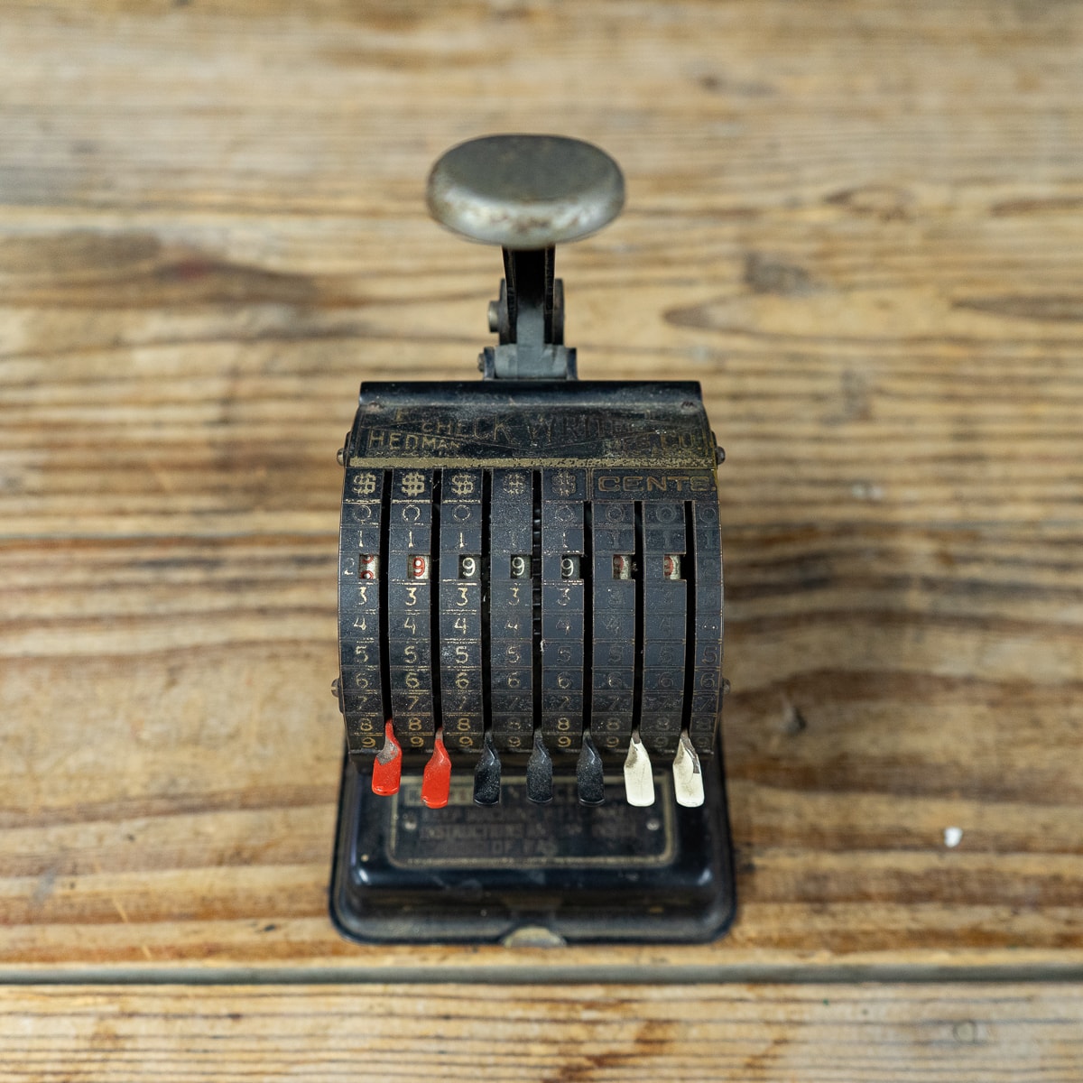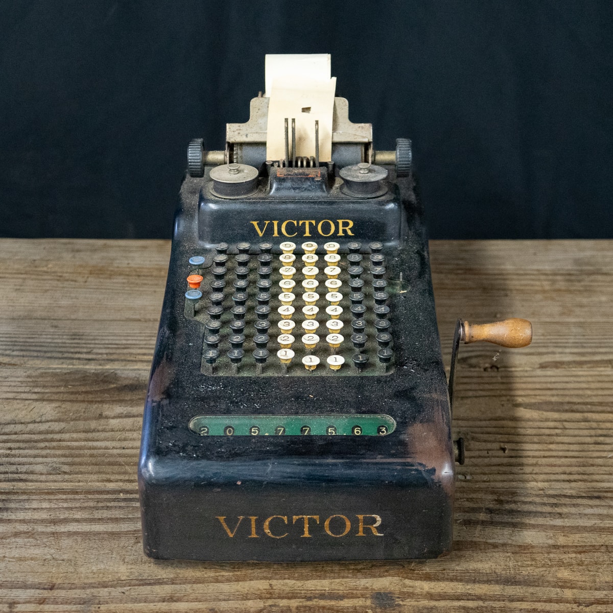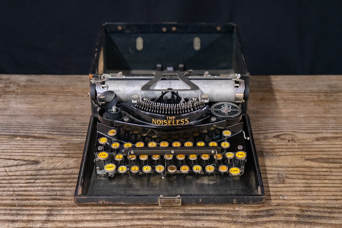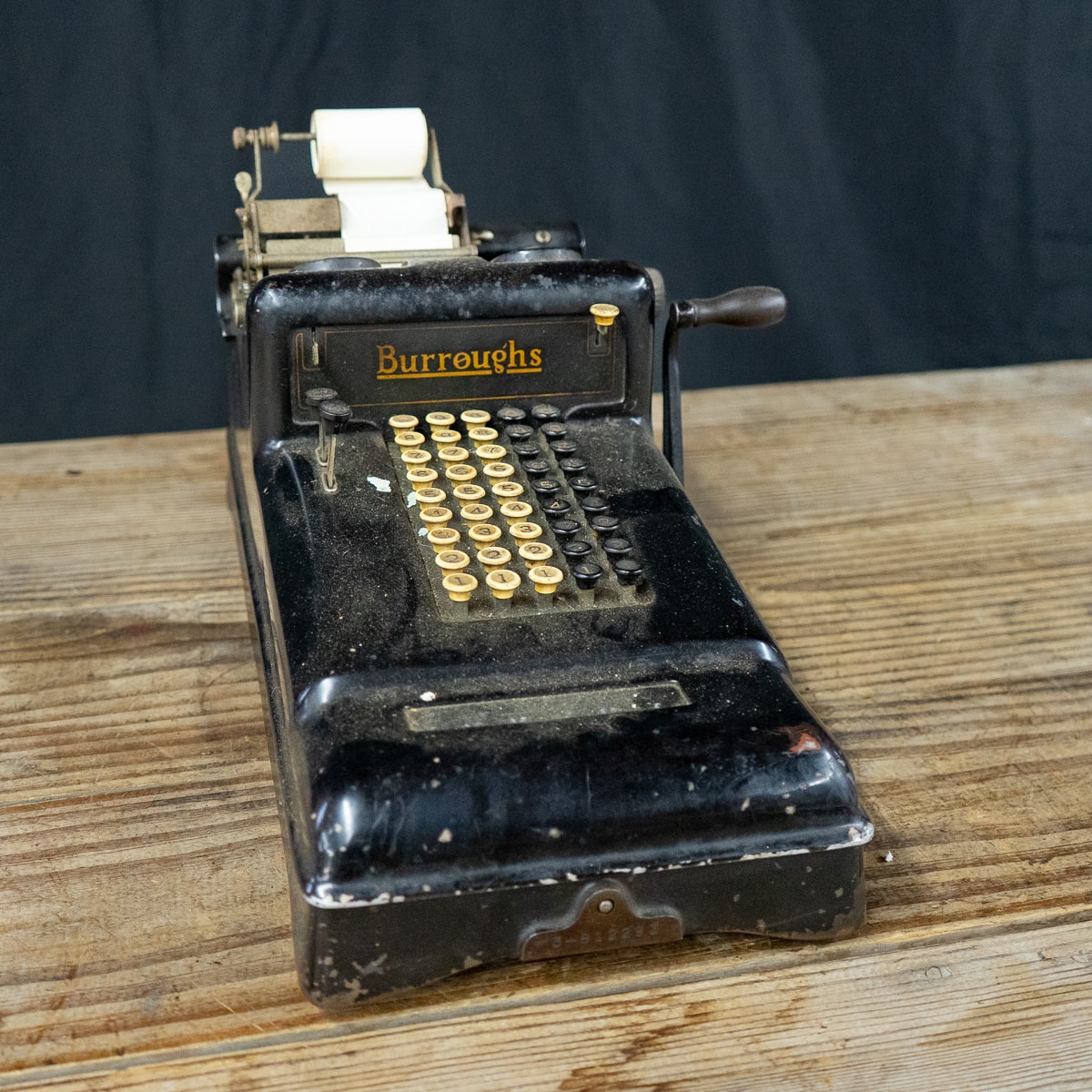 The Noiseless Typewriter, Antique Corona Folding Typewriter, Antique Victor Adding Machine, Brandt Automatic Cashier Change Machine, Burroughs Adding Machine, Burroughs Adding Machine, F&E Hedman Check Protector, C.M. Todd & Company Check Writer