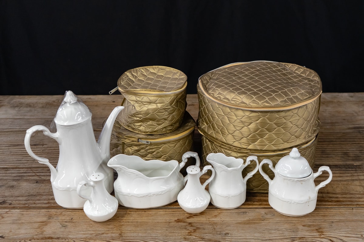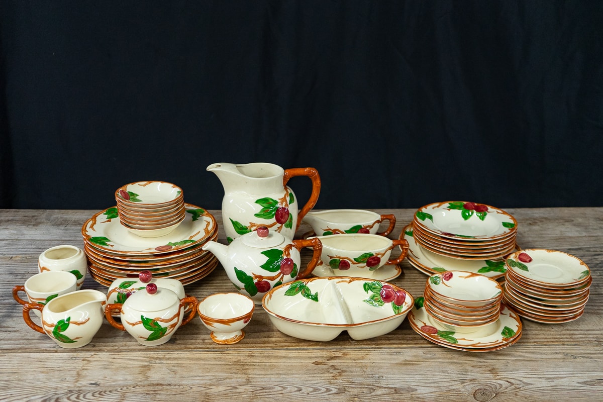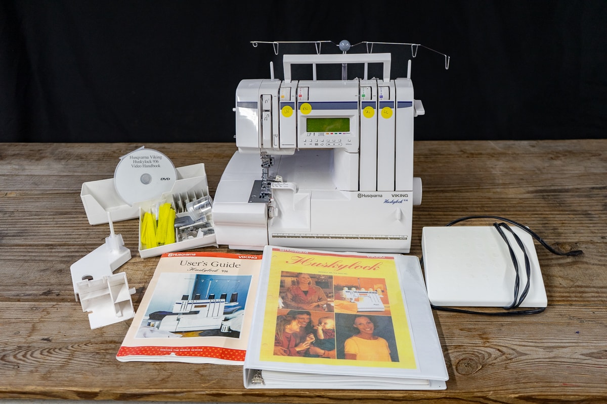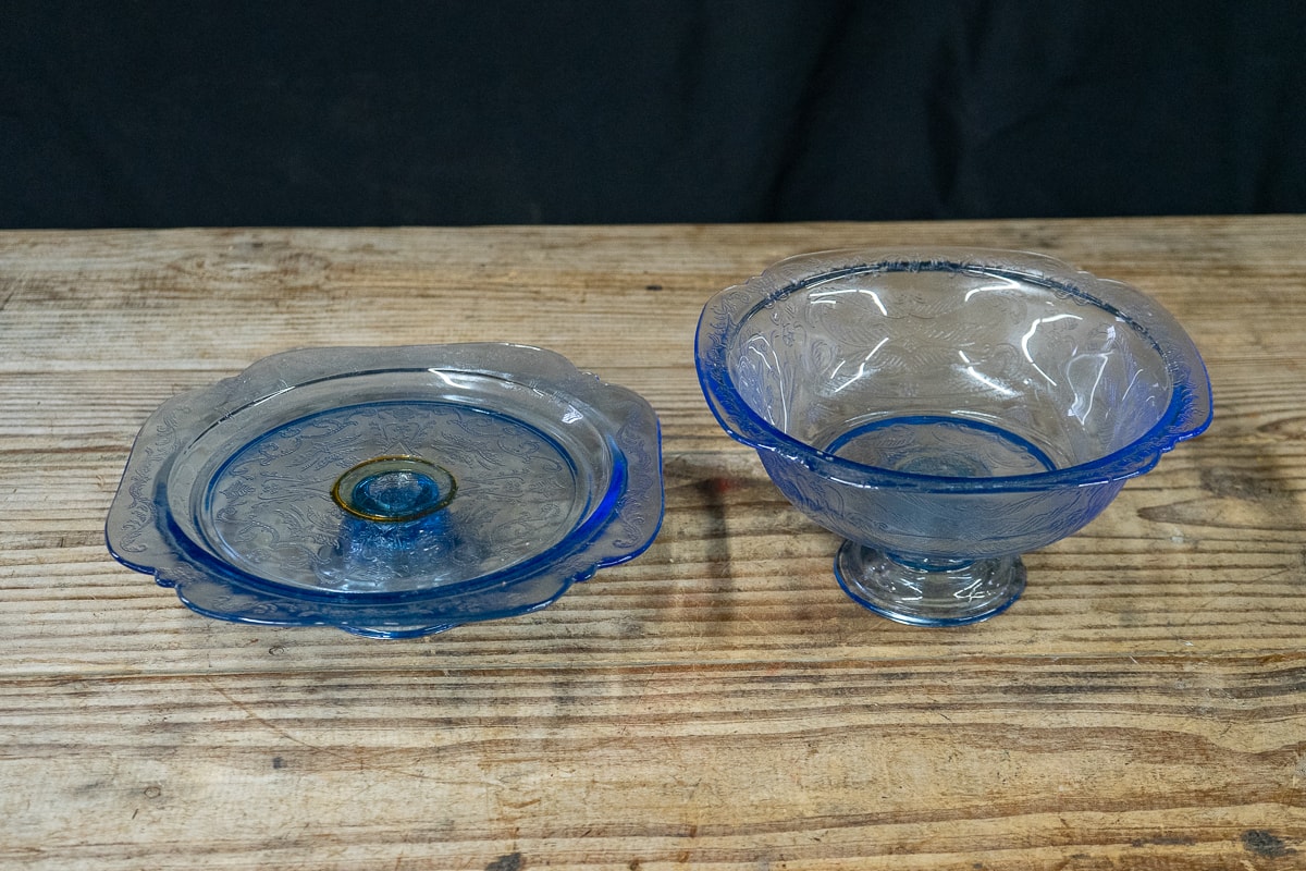 Collection of Pressed Crystal Glassware, Collection of Clear Pressed Glass, GM Body by Fisher Low Ball Glasses, Six Bellheimer Weissbier Pilsner Glasses, Green Depression Glass Sherbets & Water Glasses, Amber Glass, Jadeite, Porcelain Wares & More, Pressed Glass Compote & Fruit Bowl, Pfaltzgraff Yorktowne Blue & White Dinnerware, Theodore Haviland Dinnerware & J & G Meakin Ironstone Tea Set, Tin Cookie Cutters, Assorted Cookie Cutters, Red Plastic Cookie Cutters, Twelve Days of Christmas Cookie Cutter Set, Miniature Homemade Ice Cream Churn, Collection of Assorted Cookie Cutters, Husqvarna Viking HuskyLock 936 Swing Sewing Machine