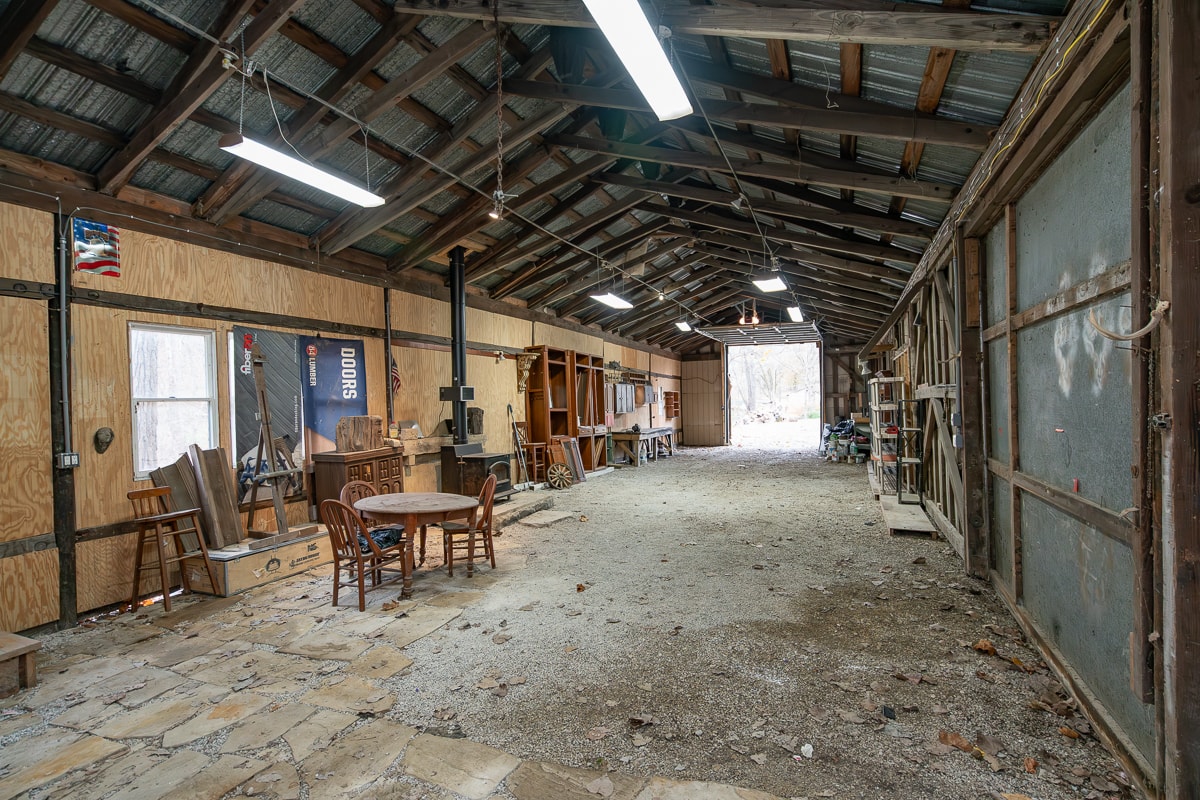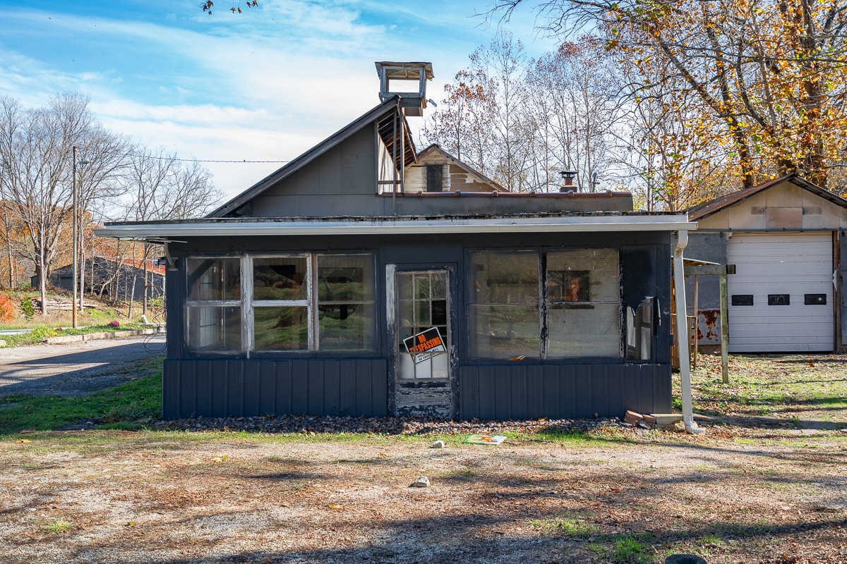 Zoned (AR) Ag-Residential and surrounded by Neighborhood Commercial properties, this high-visibility site features a 4 room – 1 bath concrete block building with a 22′ × 84′ metal pole barn in the rear. The property has supported multiple uses over the decades and most recently served as The Ruckman Studio, home of local artist David Ruckman. With 242 feet of road frontage overlooking Middle Fork Creek, it offers excellent exposure and versatile potential.